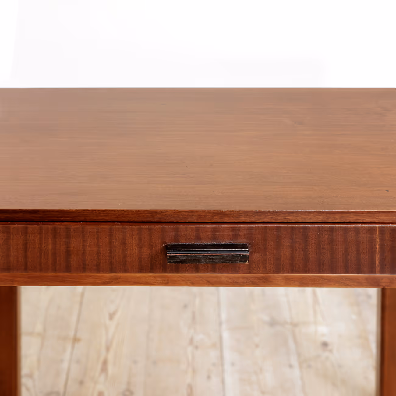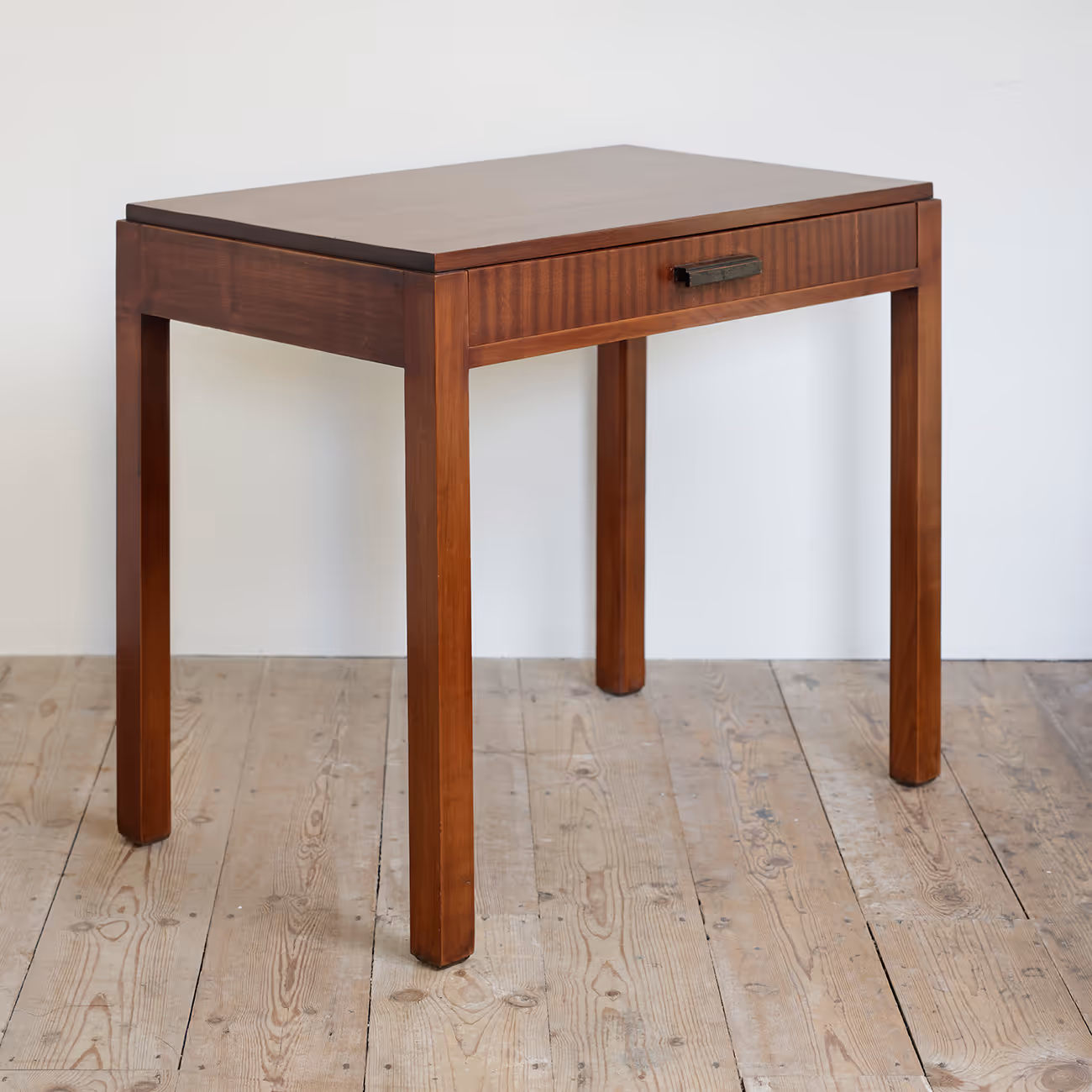 A petite-sized, modernist desk (one large drawer) in solid and veneered rosewood. Sold with chair