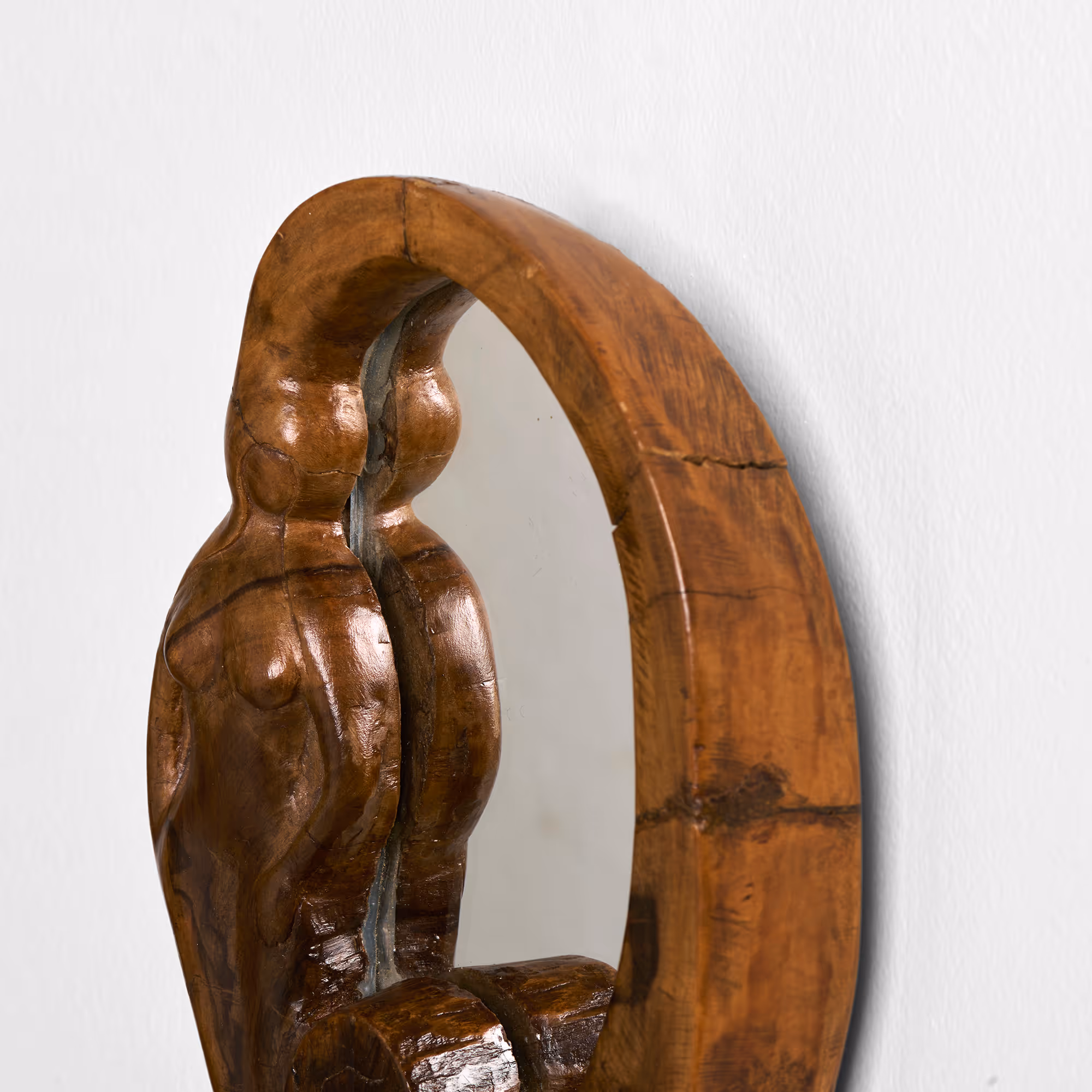 Charming hand-carved mirror incorporating a woman's figure