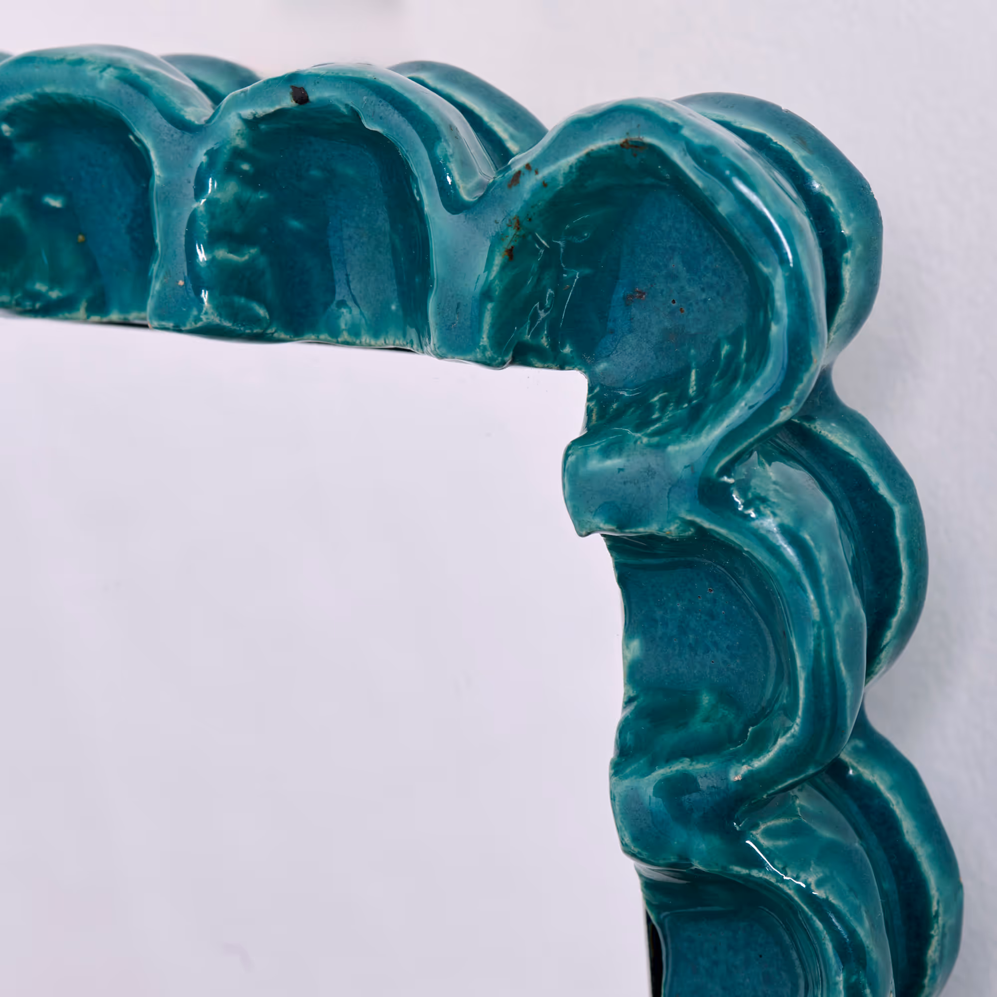 Turquoise glaze pottery mirror. Indistinctly signed on the back.