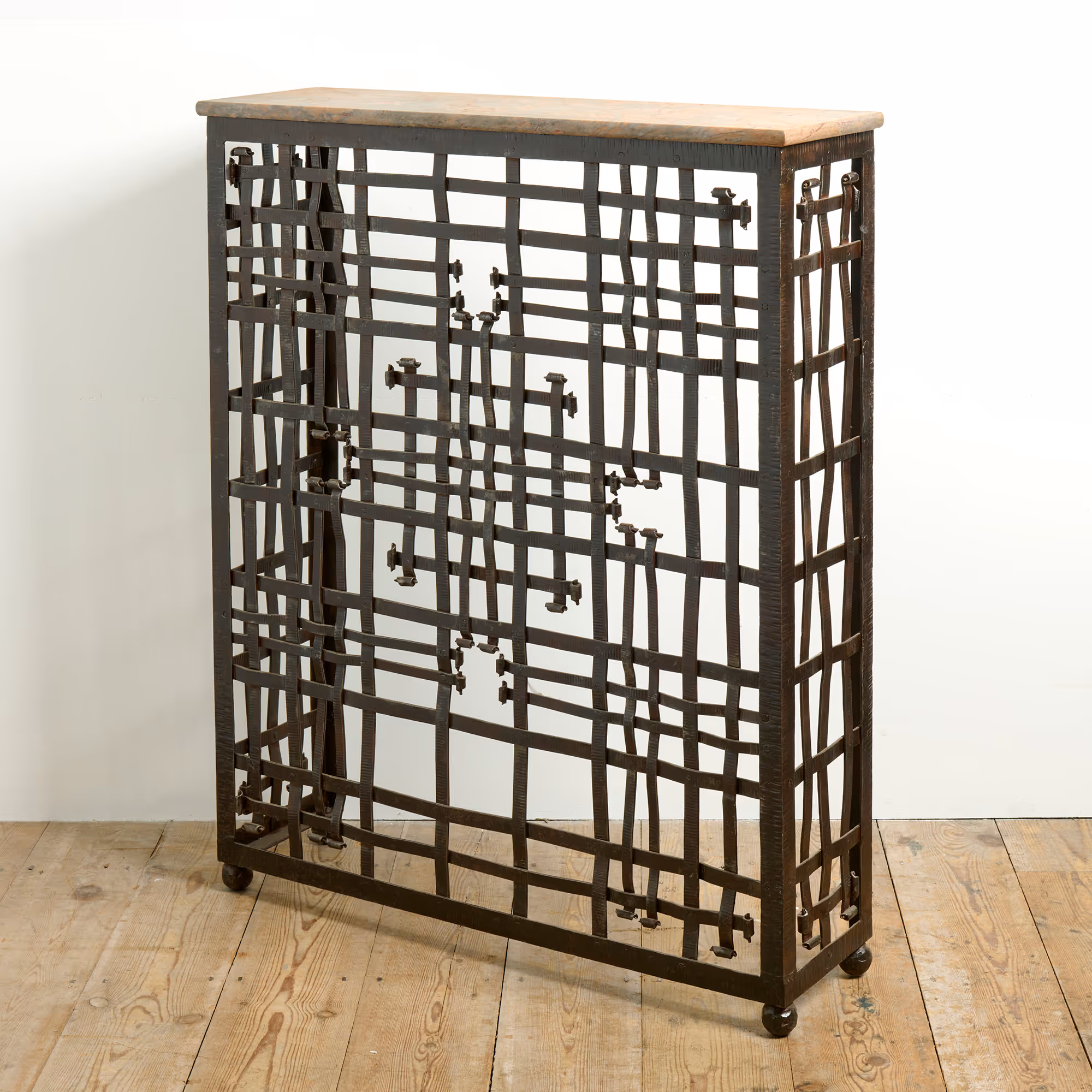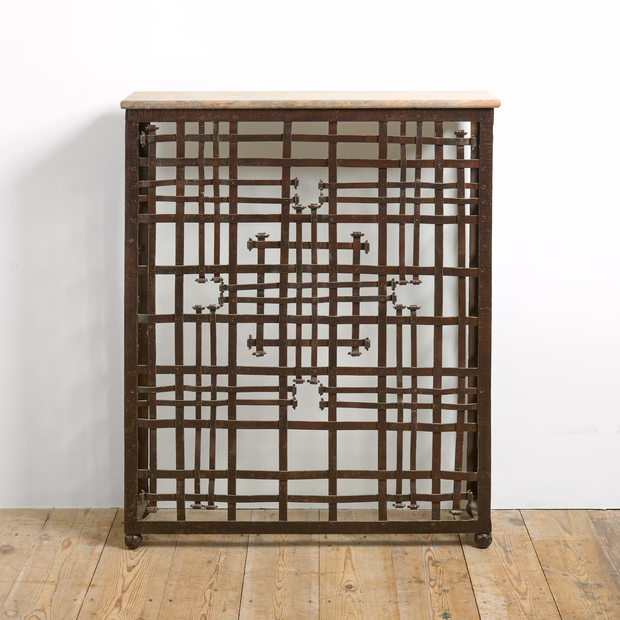 Hammered steel radiator cover with original marble top. Impressive riveted, platted steel work - superb quality.