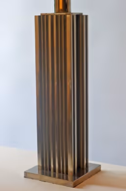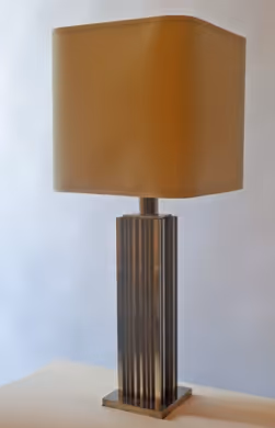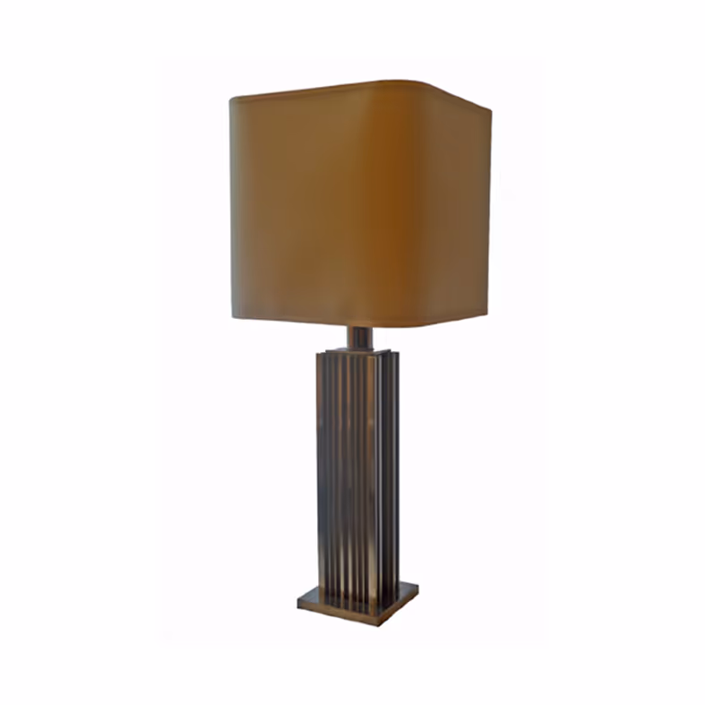 A brushed steel table lamp with a bespoke square shade Rewired and PAT-certified