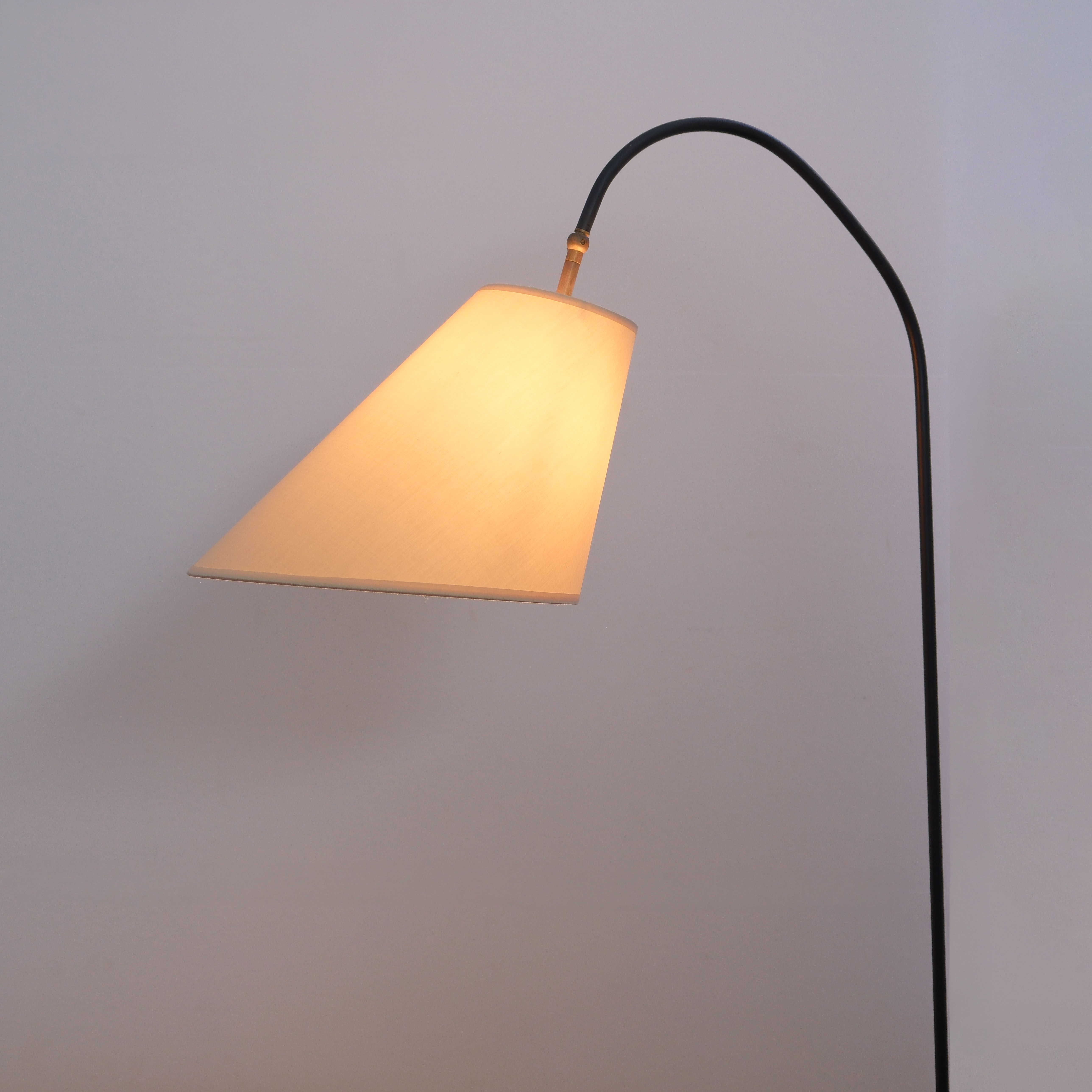 Tall clamp lamp, arched black steel stem with screw-on clamp. Can be used on desk or console table with a maximum top thickness of 28mm.