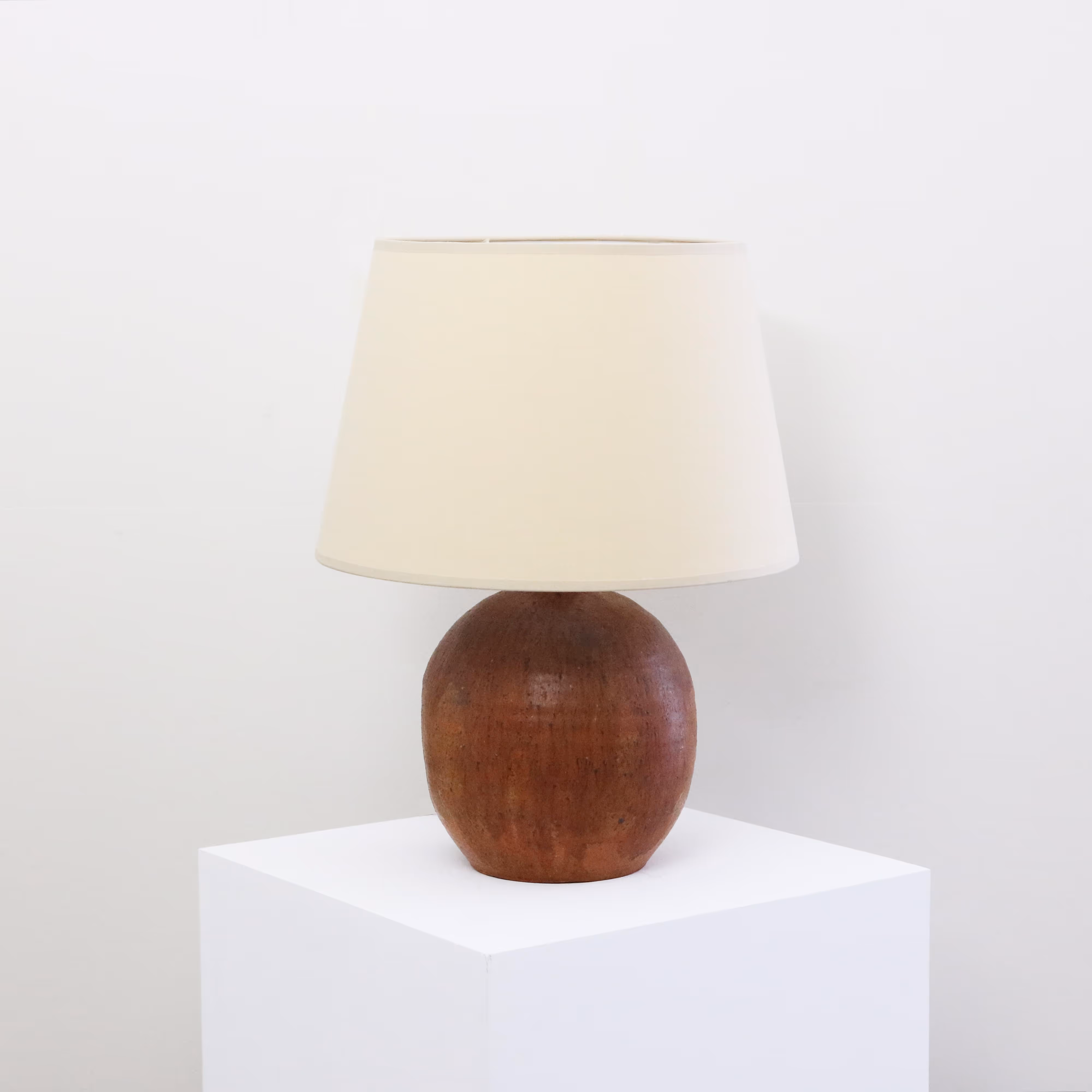 Studio pottery table lamp. Spherical base with flattened side.