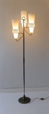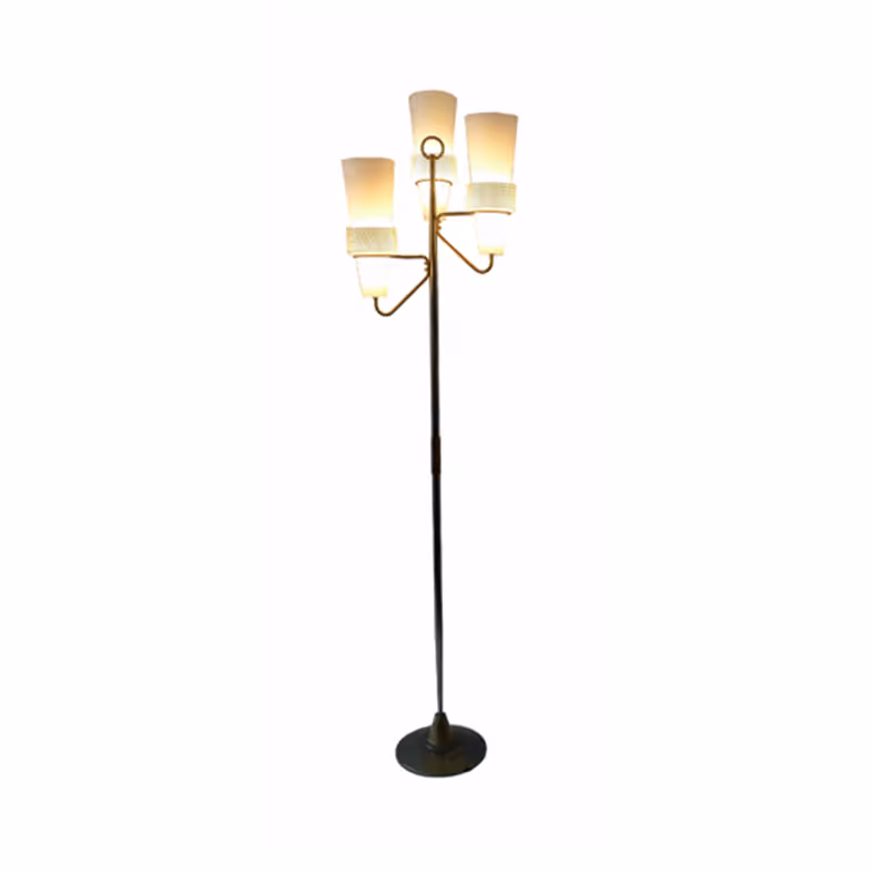 A three-arm floor lamp with original frosted glass shades, possibly by Stilnovo Rewired & PAT-certified