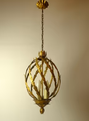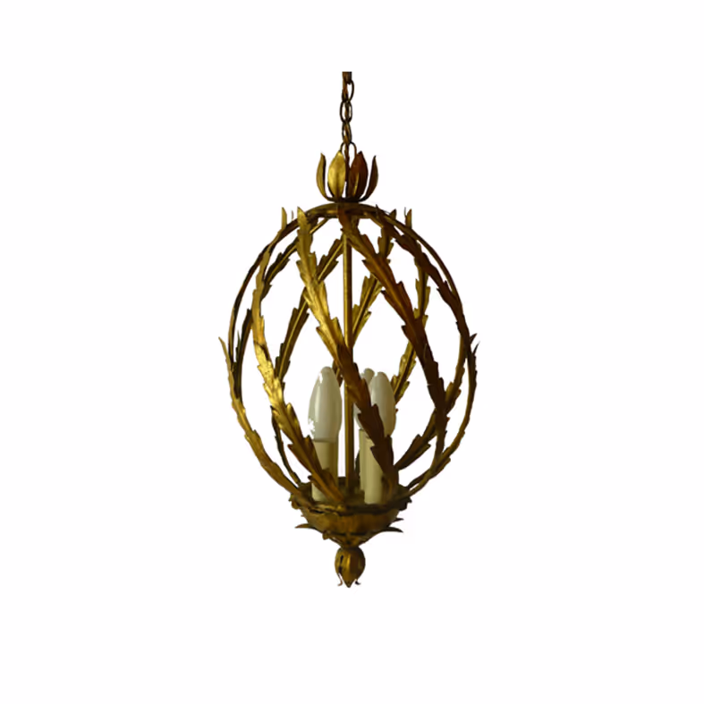 A gilt iron twisted cage pendant, four bulbs. Re-wired and PAT certified