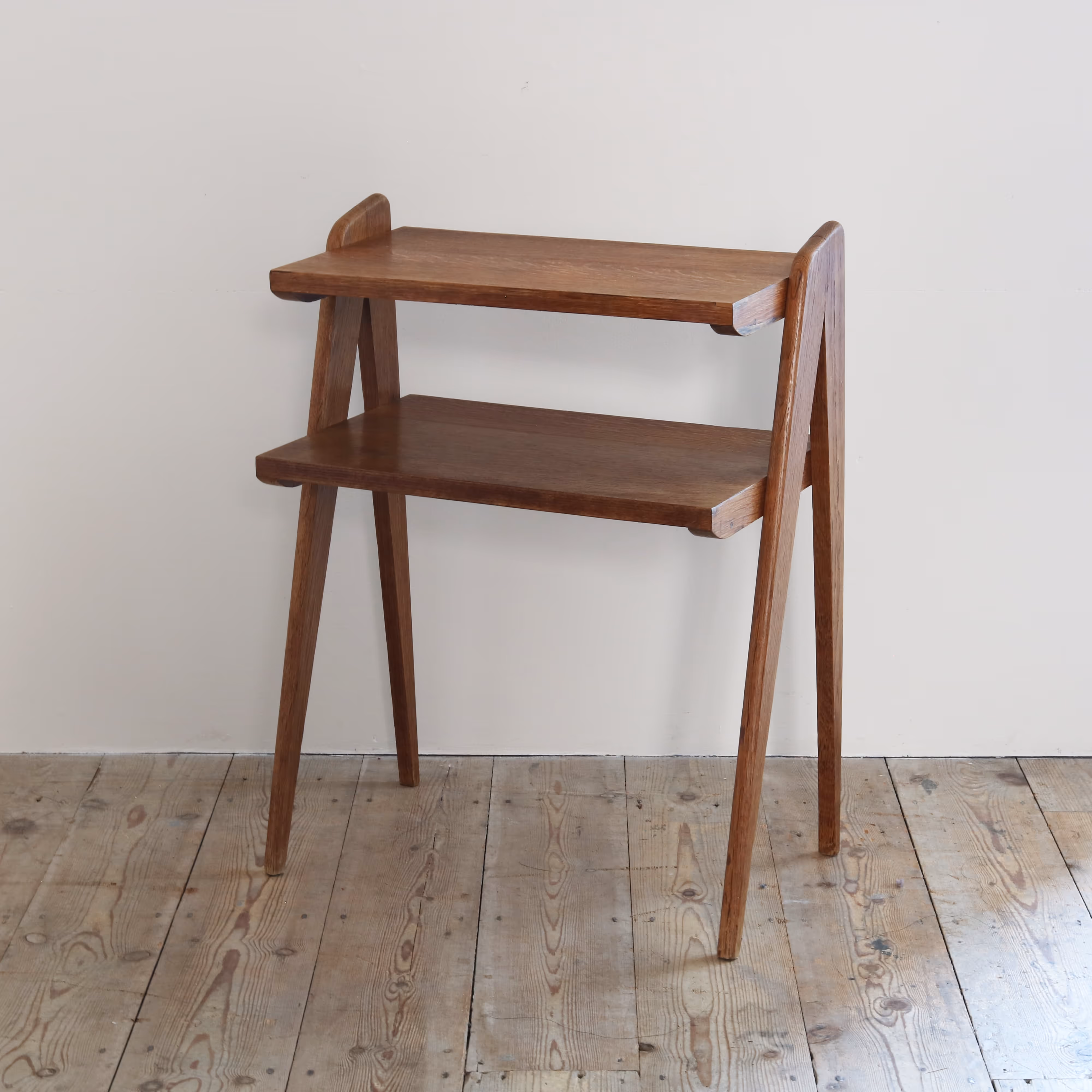 A two-tiered oak side table by Marcel Gascoin.