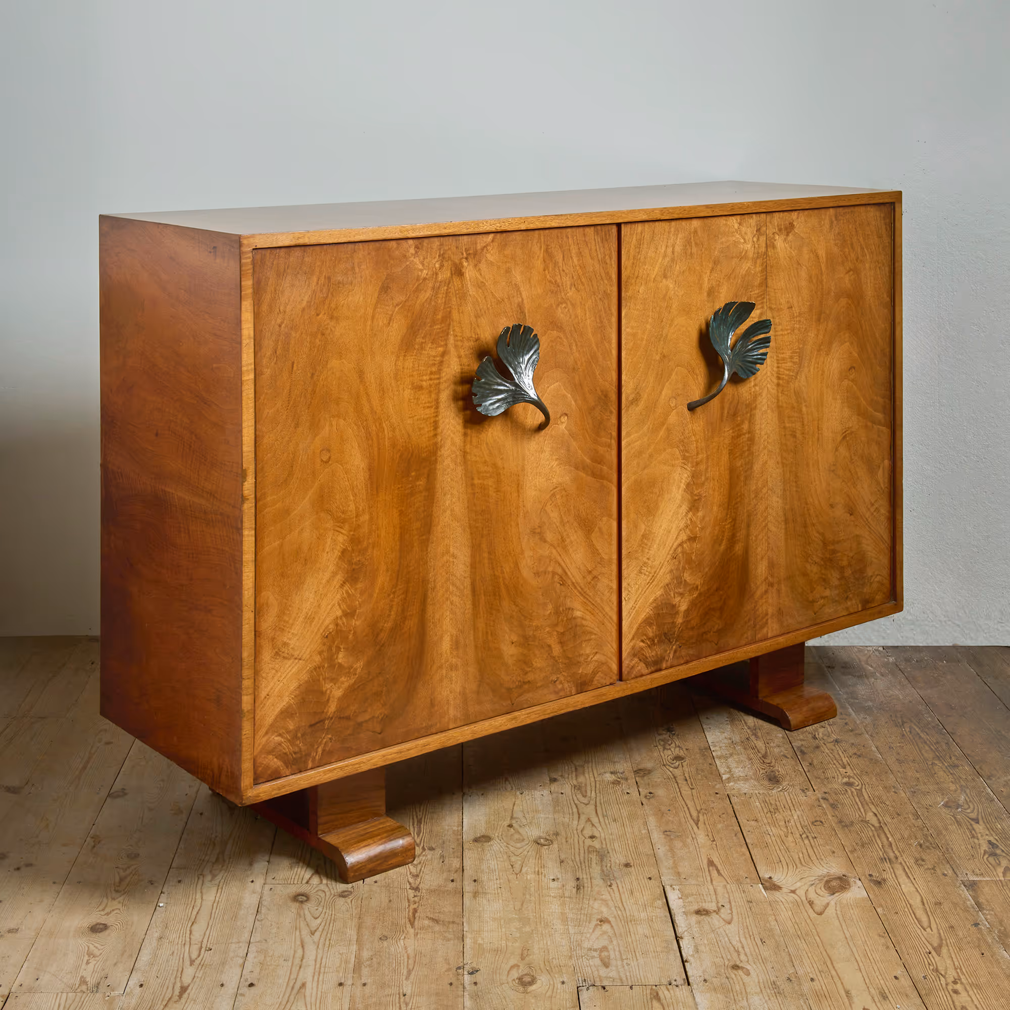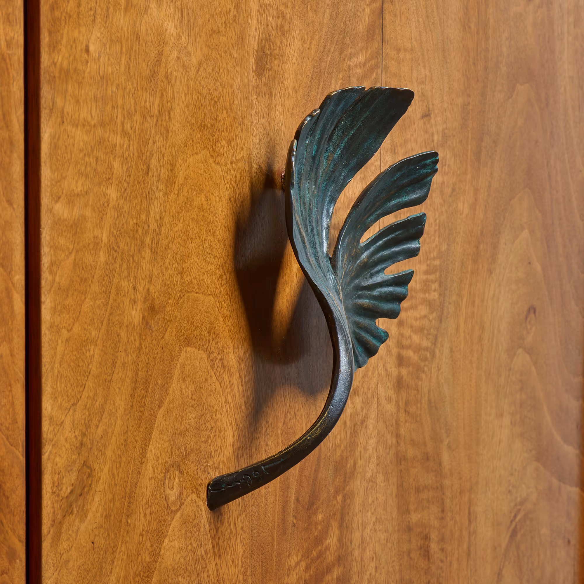Pair of bronze gingko leave sculptures (signed Guy Jobin, c.1980) recently applied as handles.