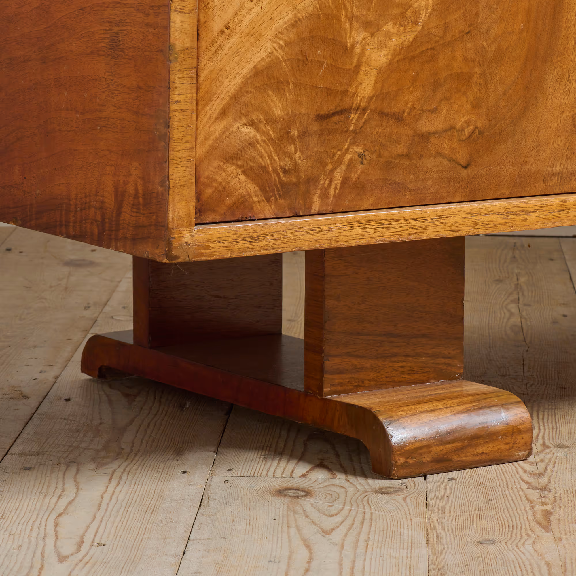 Large walnut cabinet with sleigh-style base. England, c.1940.