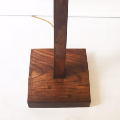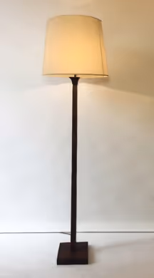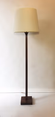 A tall walnut floor lamp in the style of Jean-Michel Frank. Square base and shaft. Rewired and PAT-certified, bespoke card shade