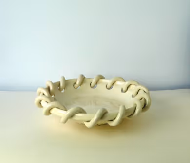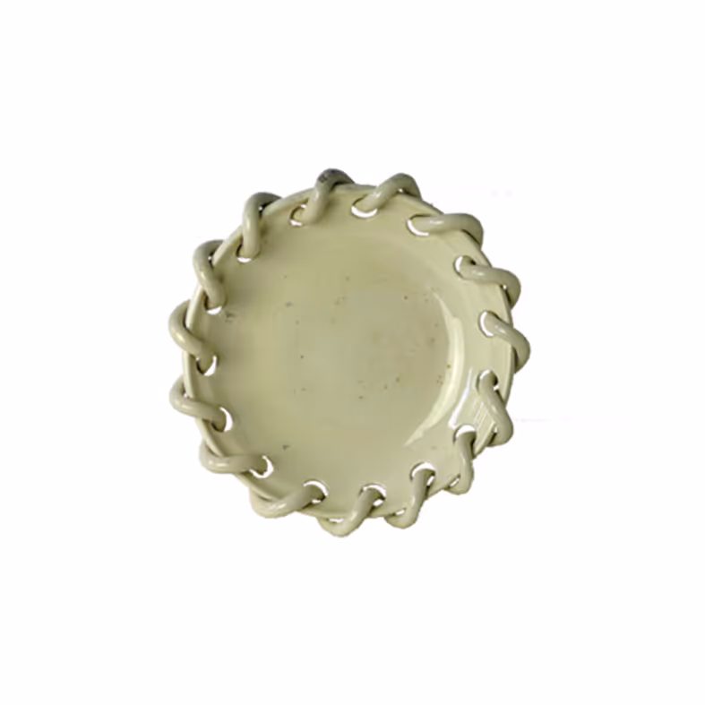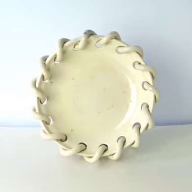A white ceramic bowl with shoelace design. Possibly by Giraud in Vallauris.