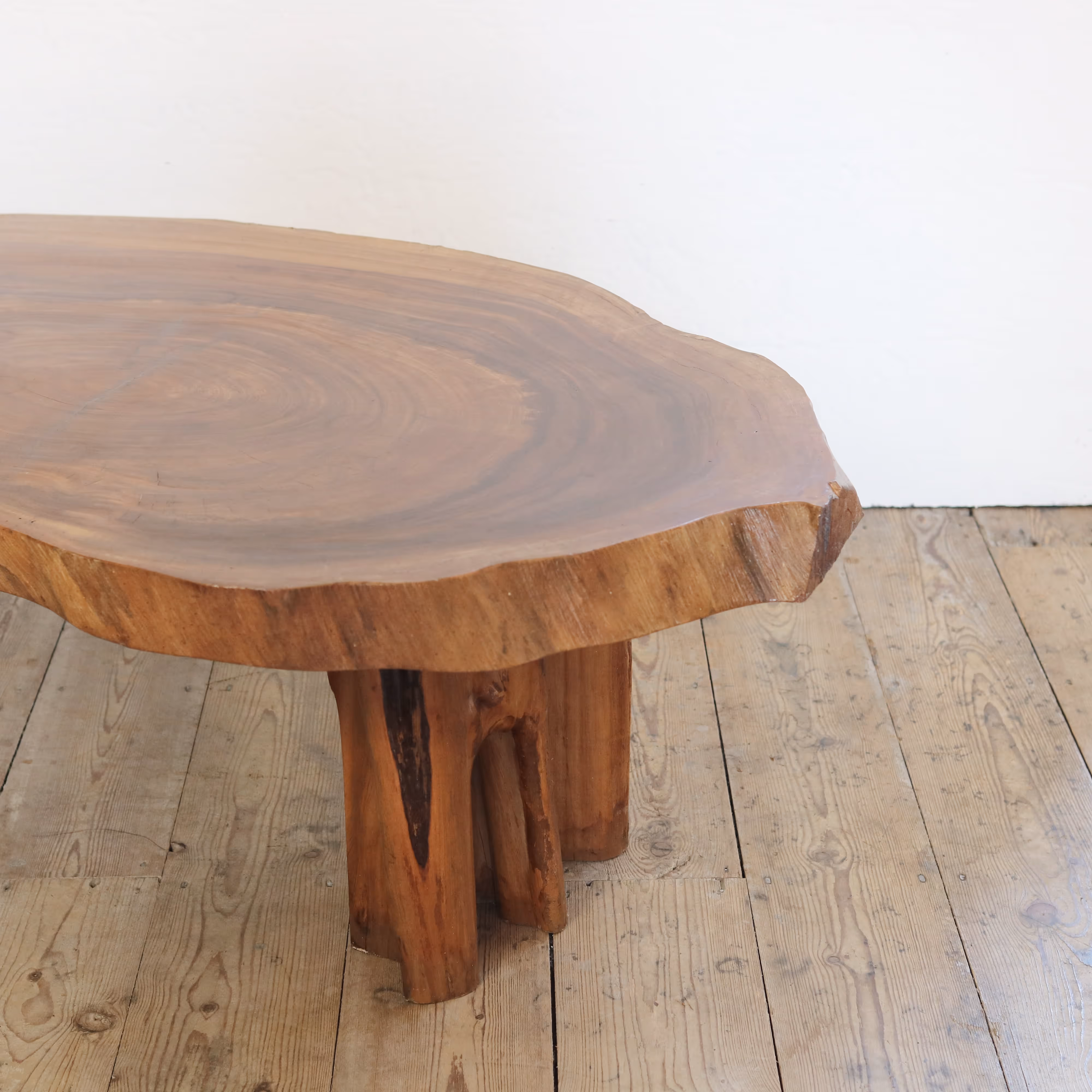 A large wood slice coffee table (walnut).