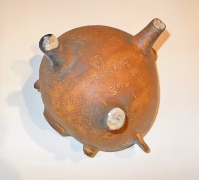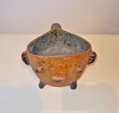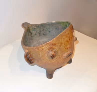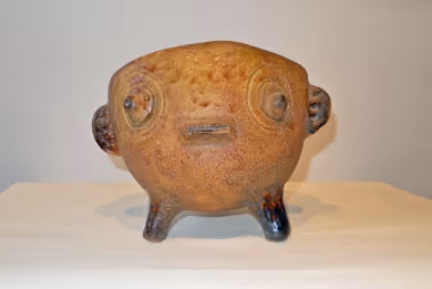 An unusual pottery dish representing a fish/human face, by Accolay.
