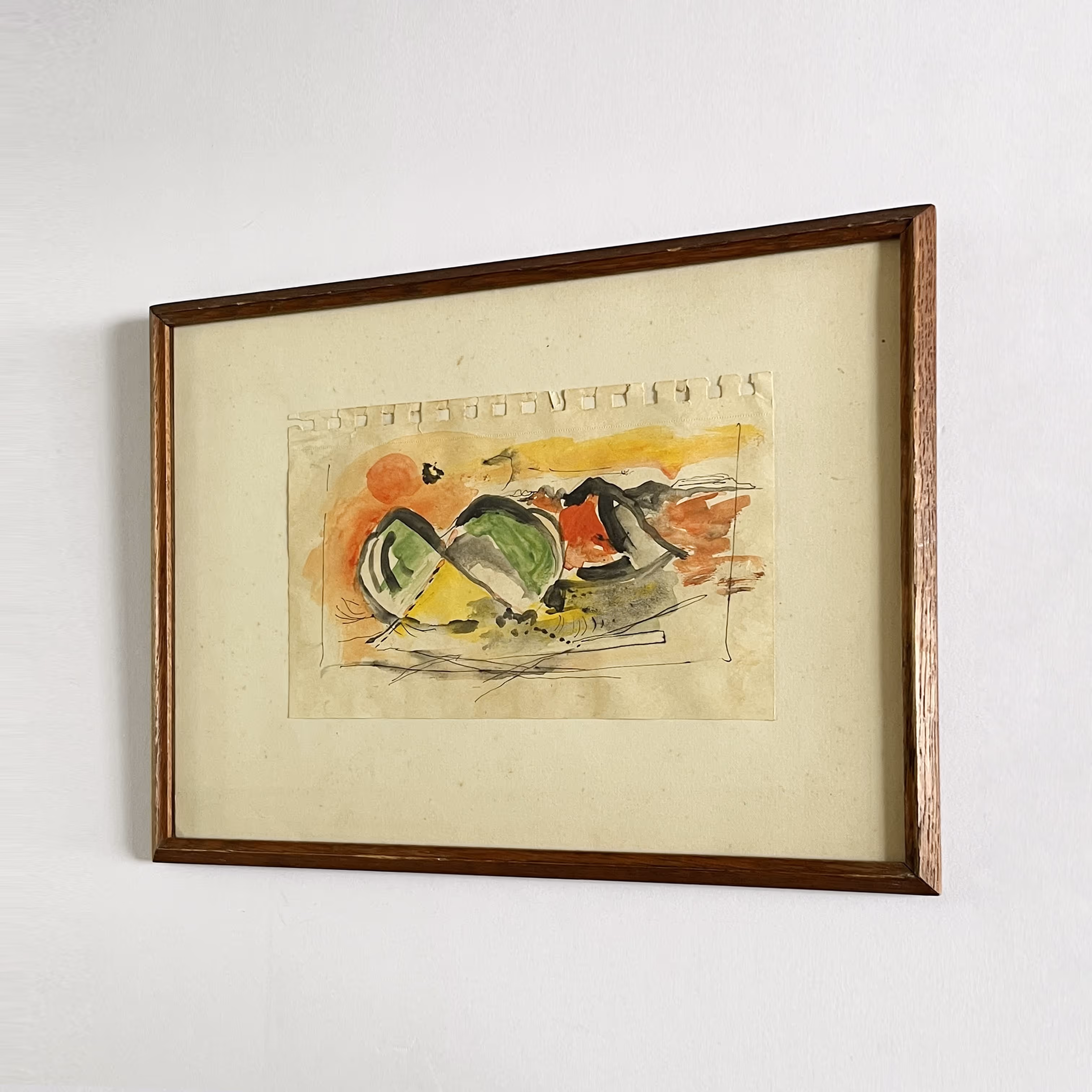Abstract composition in period frame. Gouache on paper.