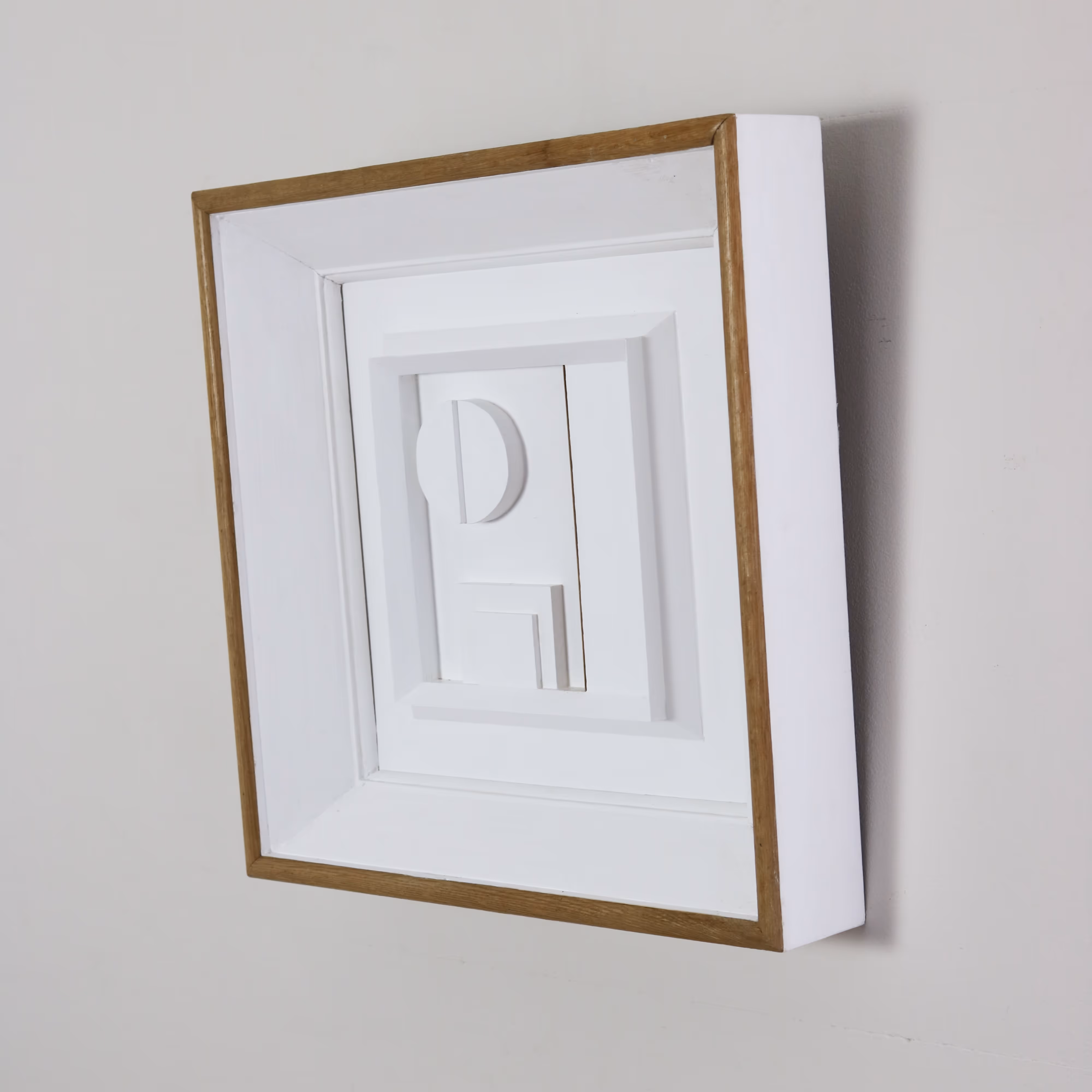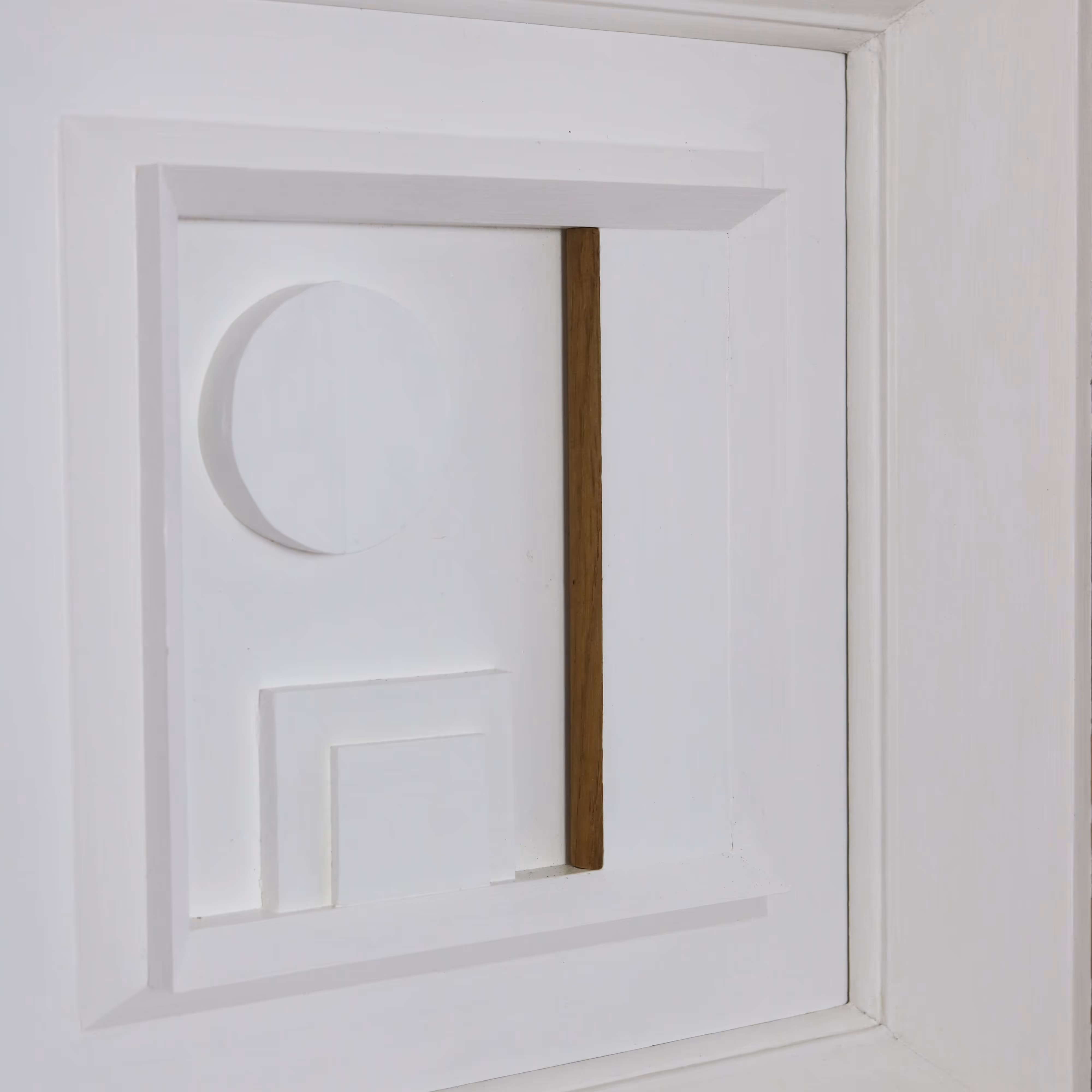 Work inspired by Ben Nicholson's art. White-painted wood and natural oak.