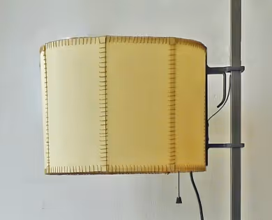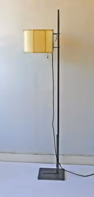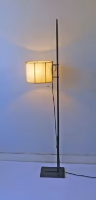 A cast iron floor lamp with original stitched parchment shade. The height of the shade is adjustable (see pictures 3 and 4). Rewired & PAT-certified