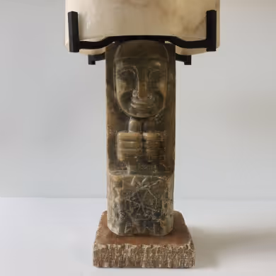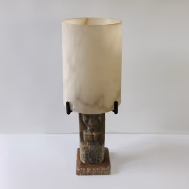 A carved alabaster figurative table lamp. Re-wired & PAT-certified