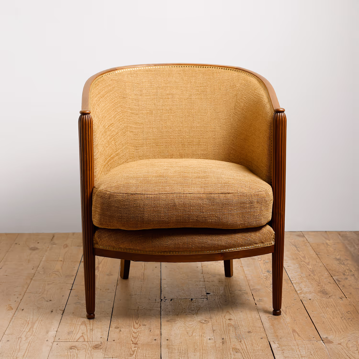 Single Art Deco tub armchair in the manner of Dominique (André Domin, 1883-1962 and Marcel Genevrière, 1885-1967).