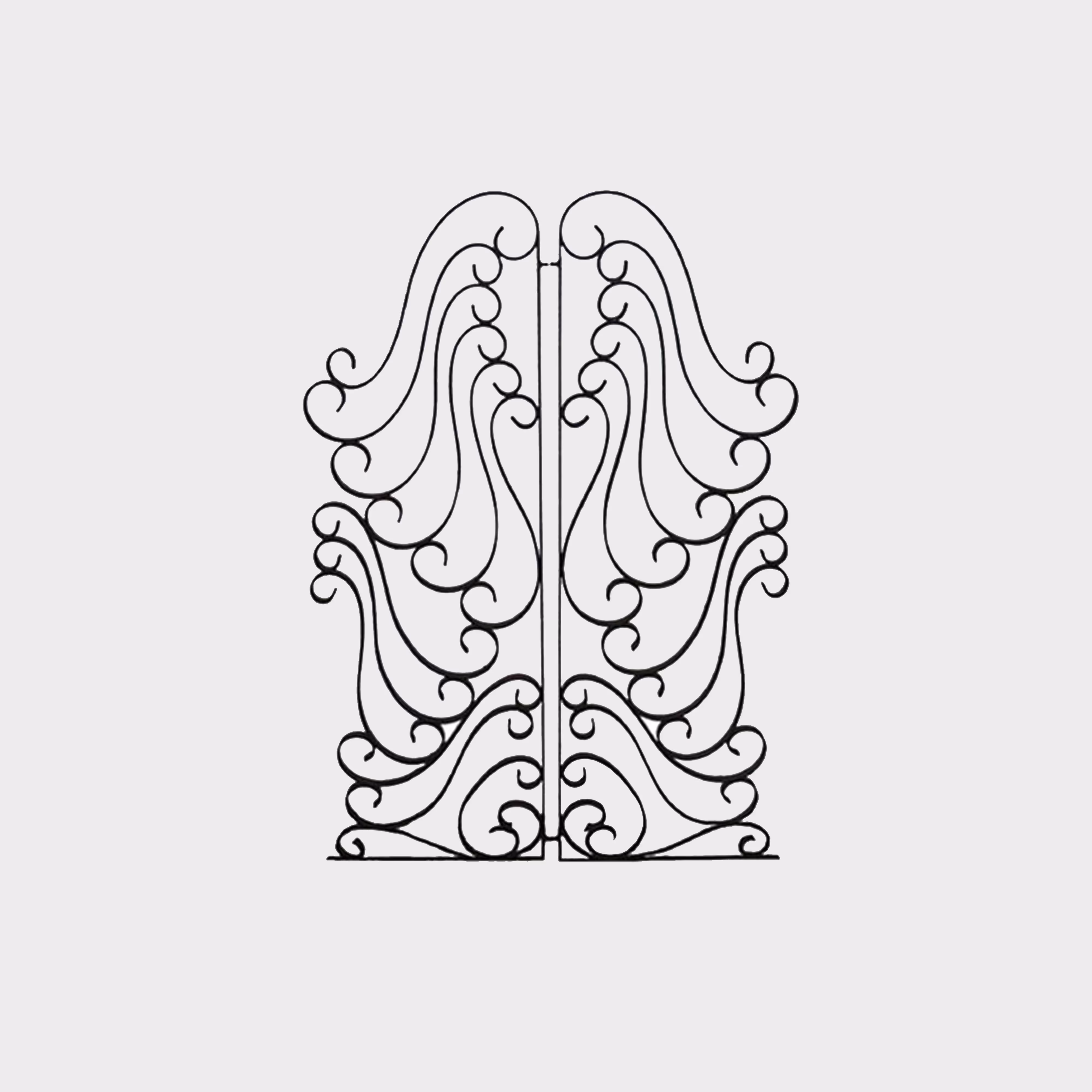 A striking wrought iron gate initially used indoors, could be used as a room divider