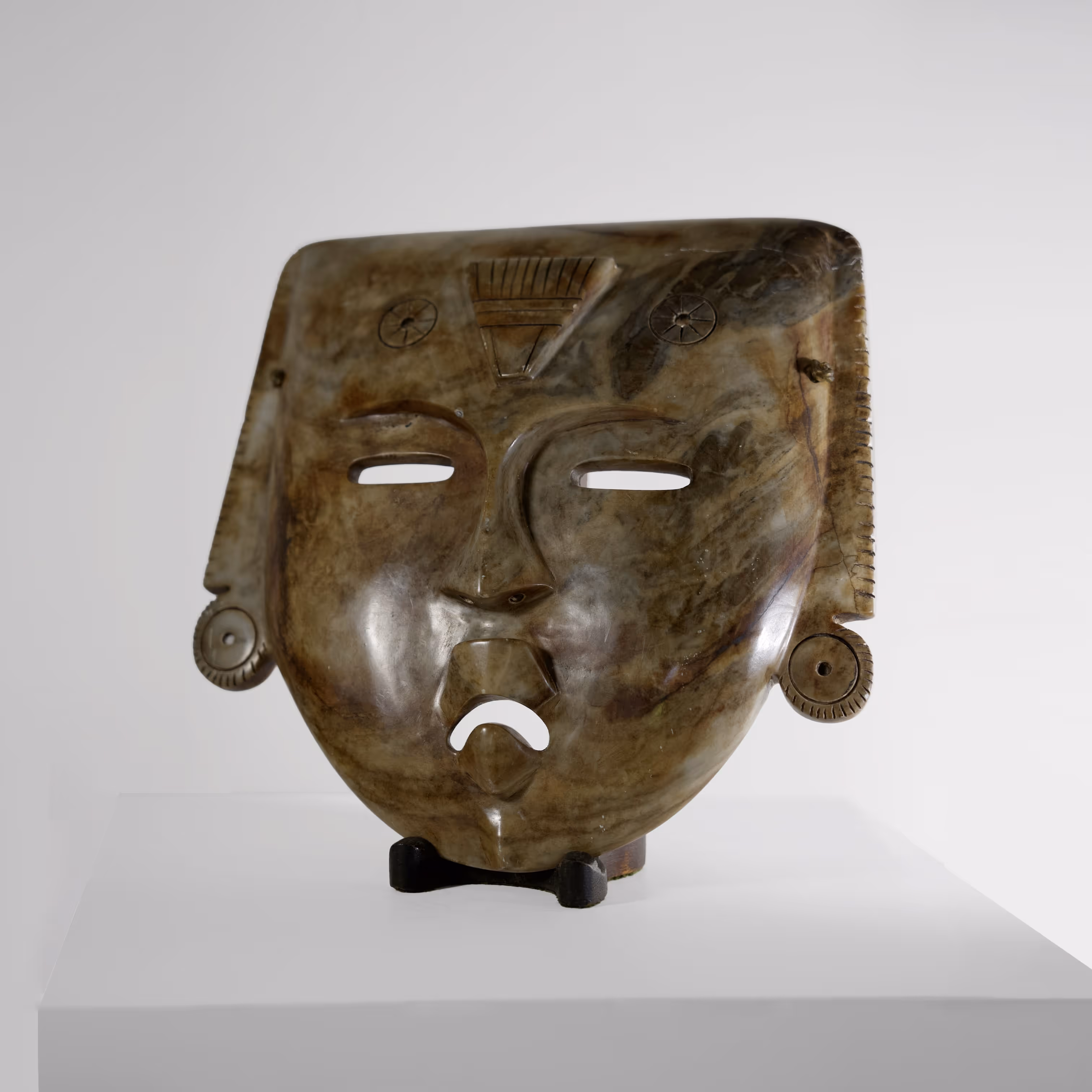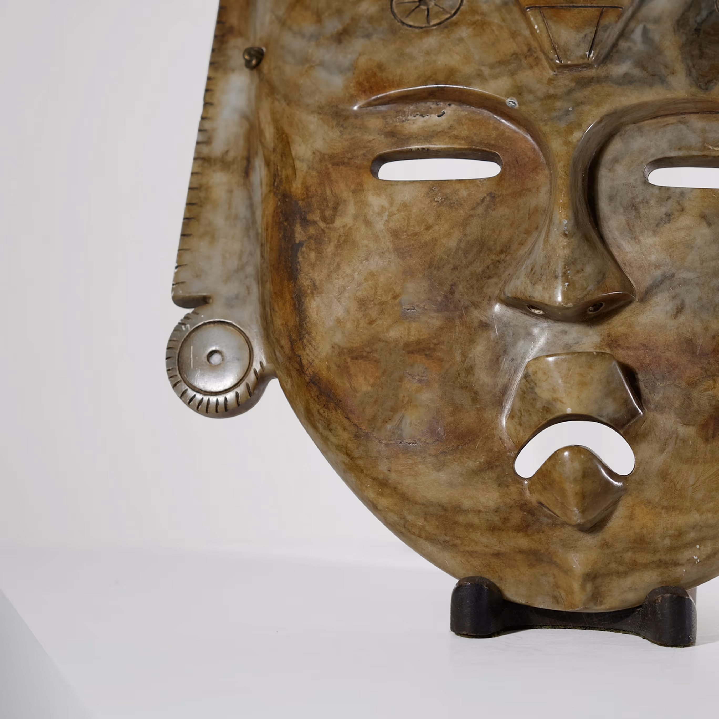 Olmec carved onyx mask - a tourist souvenir of unusually large scale.