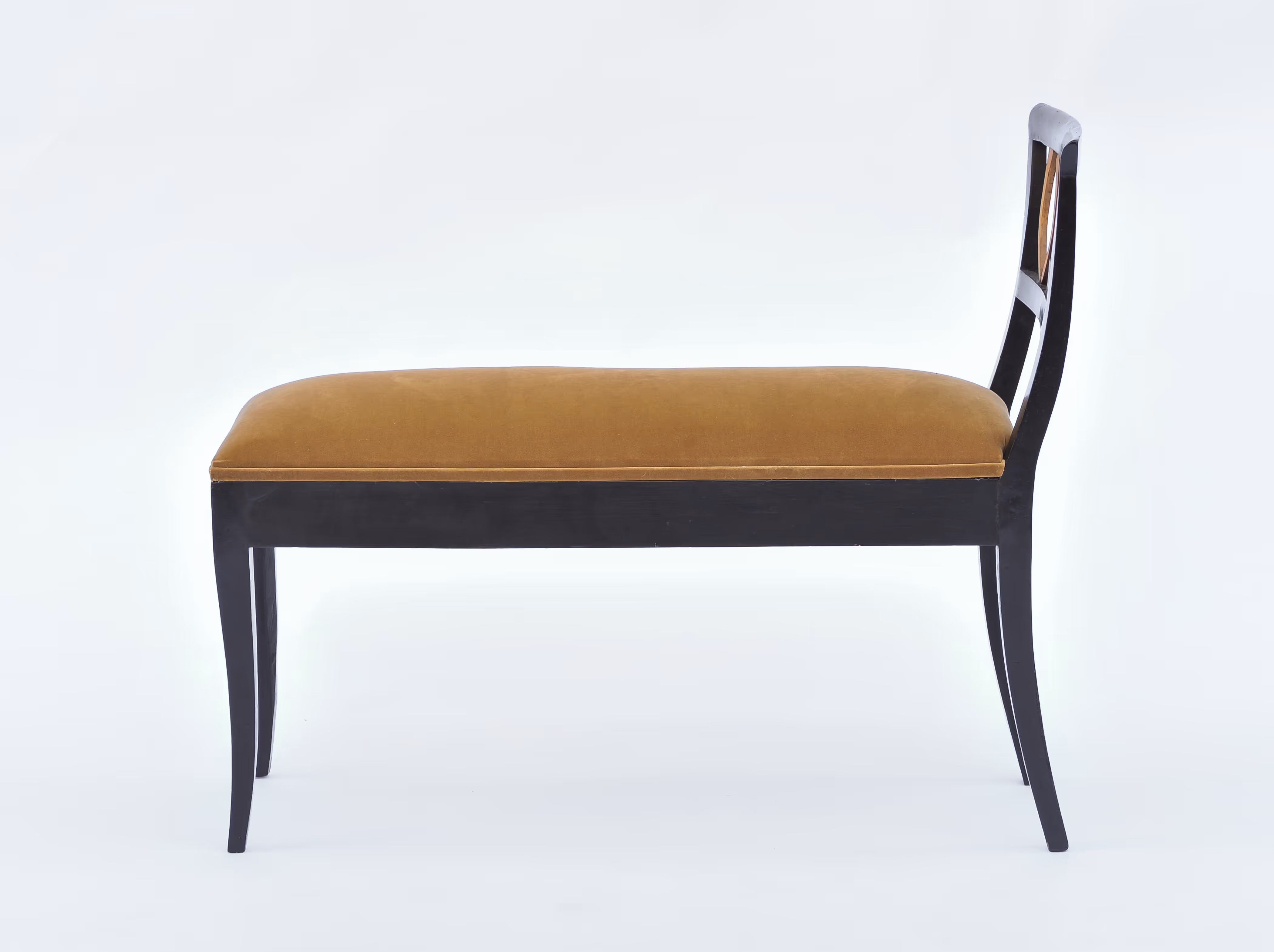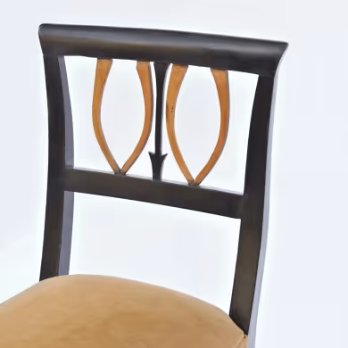 An ebonised chair with unusual elongated seat, made of two early nineteenth century dining chairs. Conversion probably made at the beginning of the twentieth century.