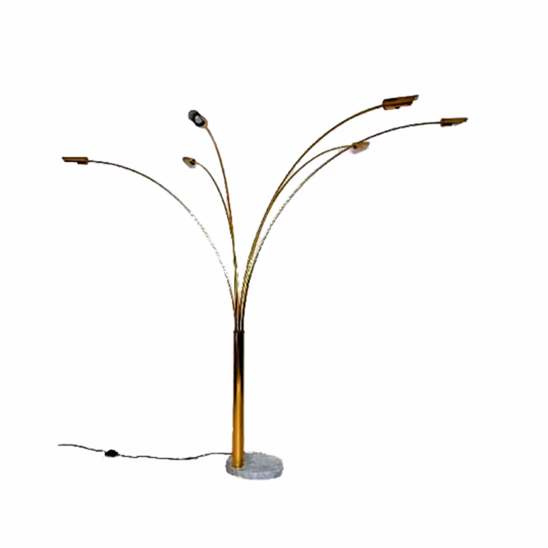 A large six-arm floor lamp in brass with marble base. Makes a nice alternative to a ceiling light. Rewired & PAT-certified