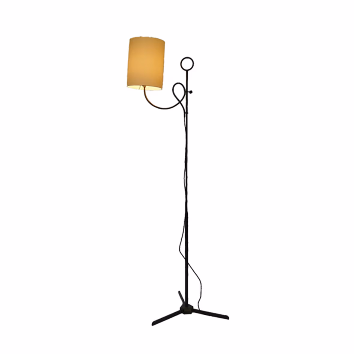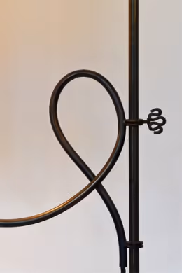 A metal floor light with interesting curlicue motif and adjustable height. Rewired and PAT-certified