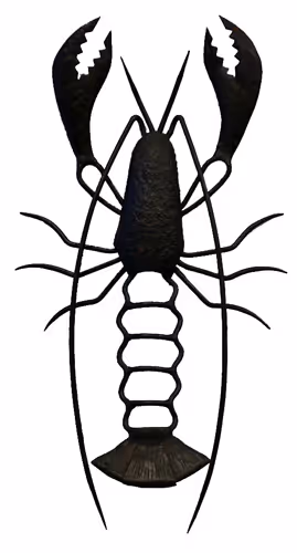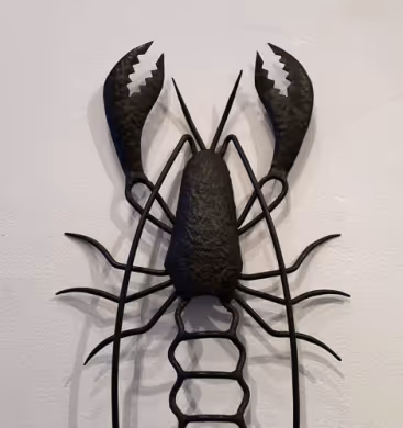 A black iron wall decoration in the shape of a lobster