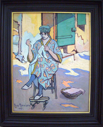A painting by Paul Ravaisou representing a woman sewing seated in the shade. Paul Ravaisou was born in Bandole, the nephew of Joseph Ravaisou himself a close friend of Paul Cezanne's. The master's influence can clearly be seen in the choice of colours and cloisonniste technique in this painting