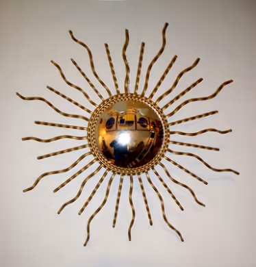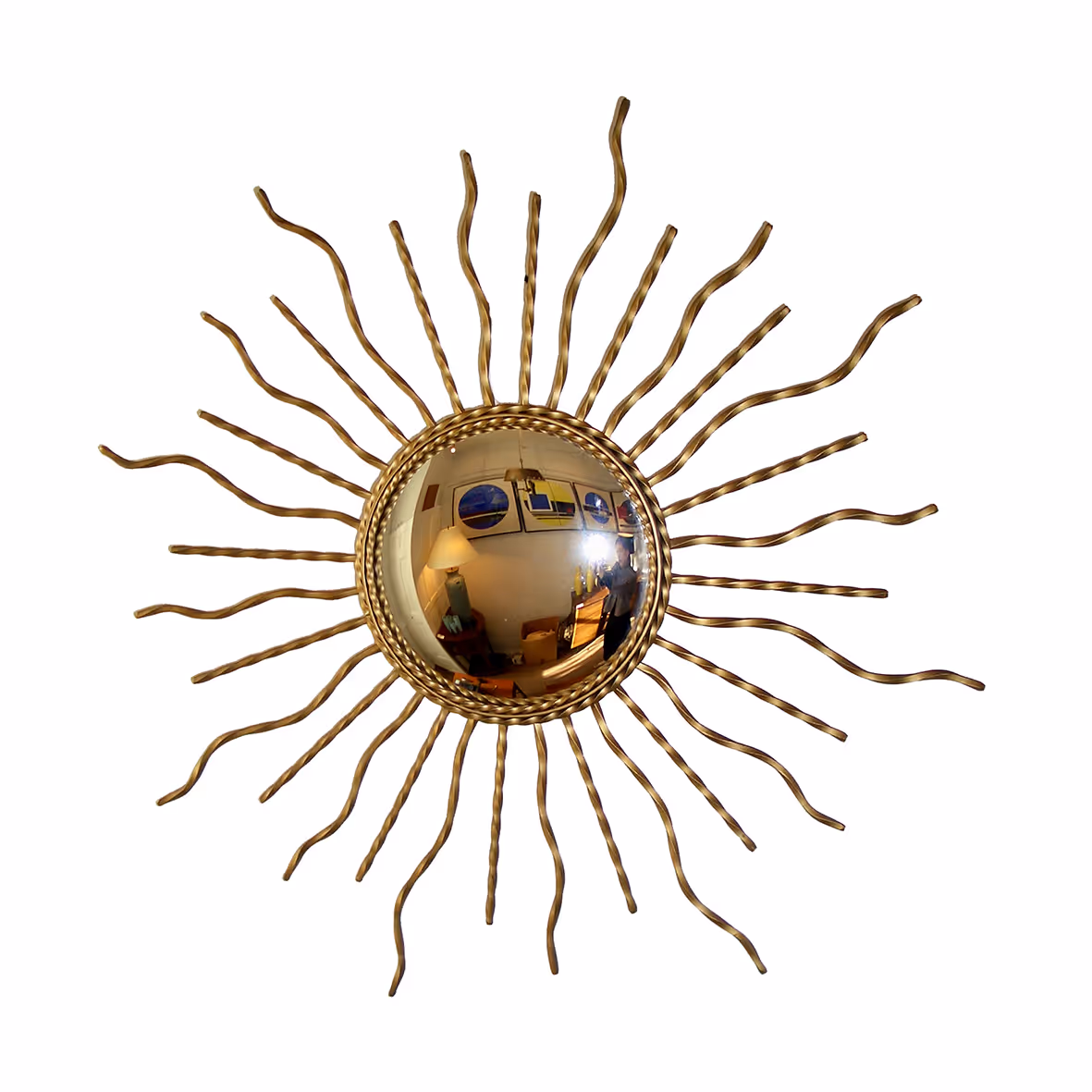 An unusual gilt sunburst mirror where the twisted ray seem to be animated with movement. Convex plate