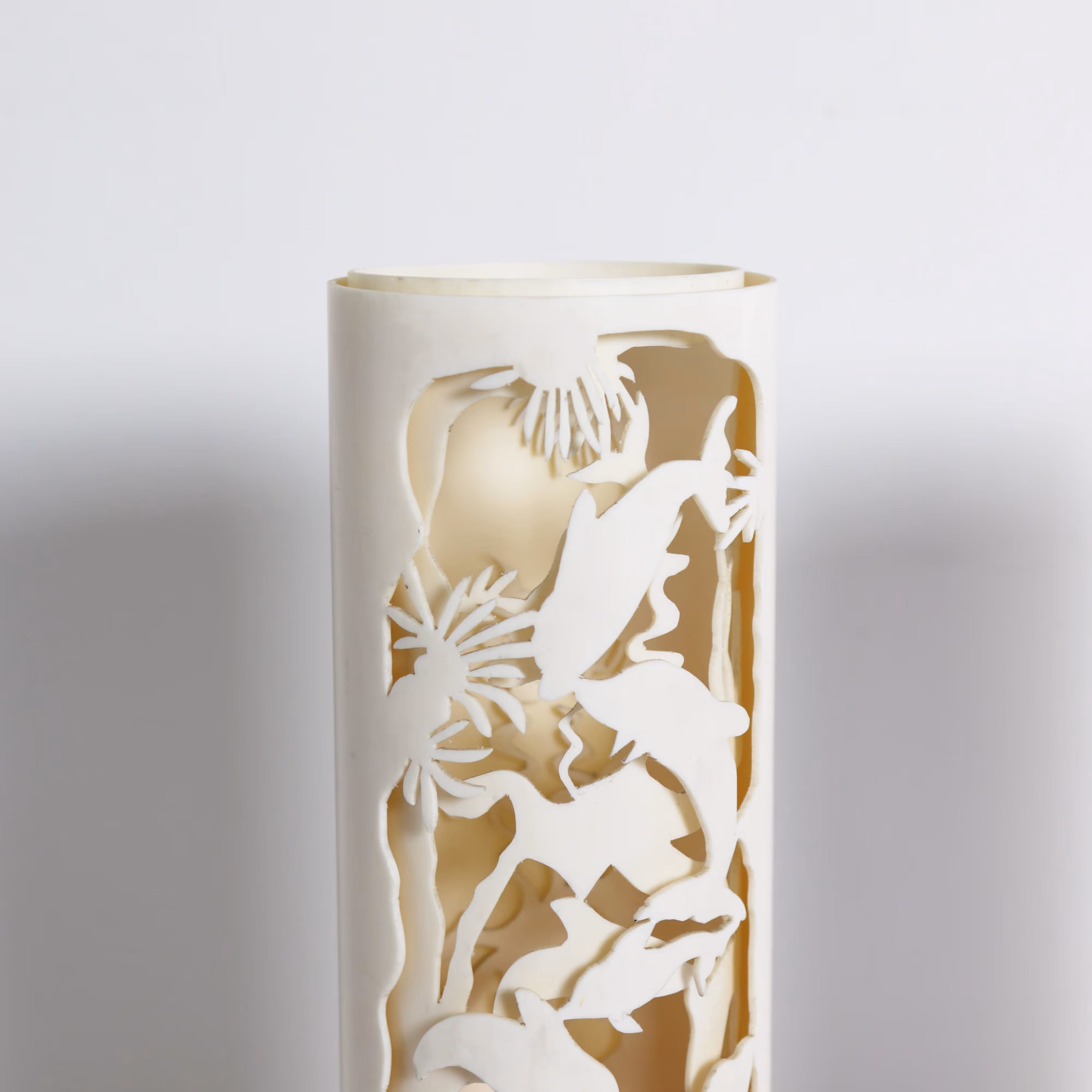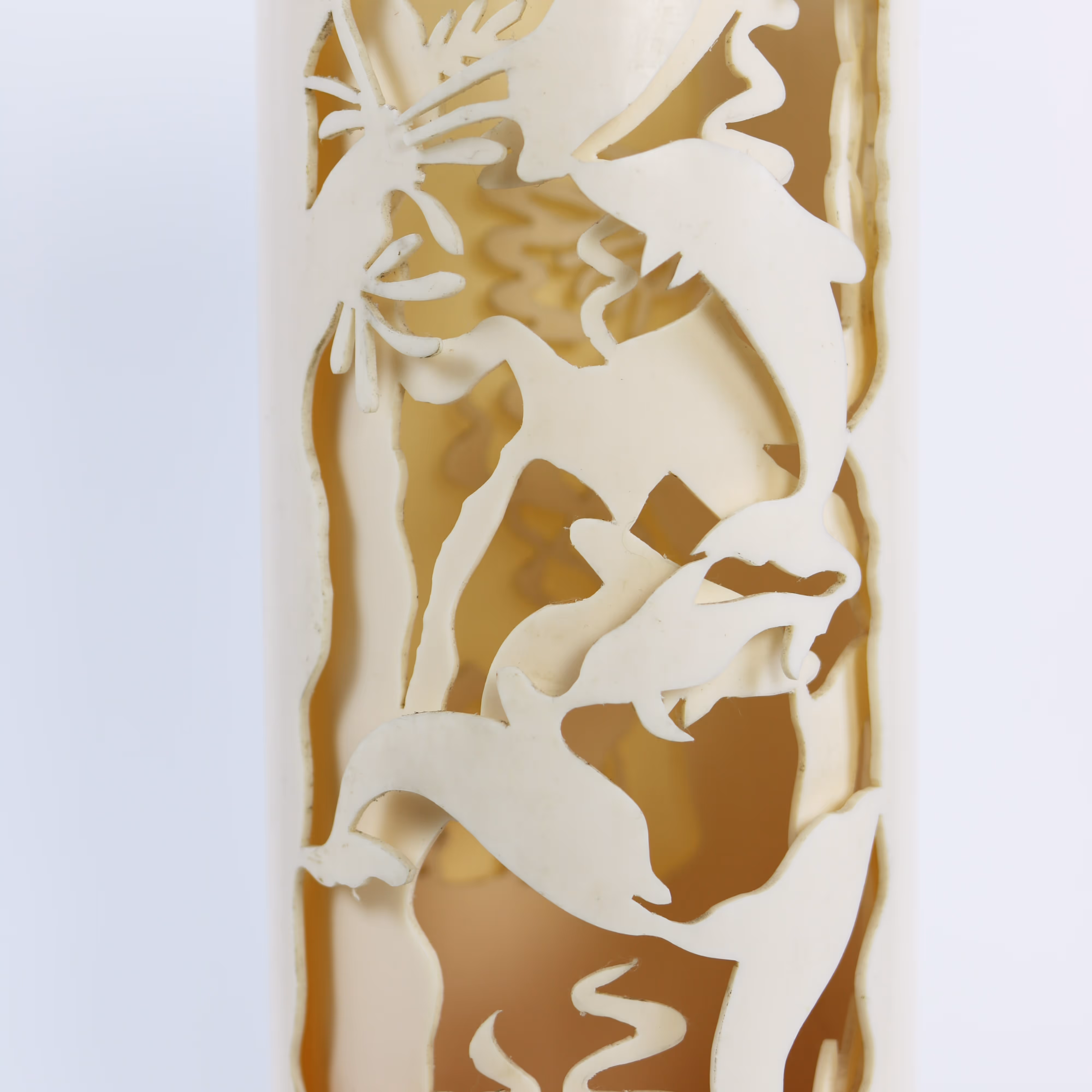A pair of unusual faux ivory lamps with cutout underseascapes.