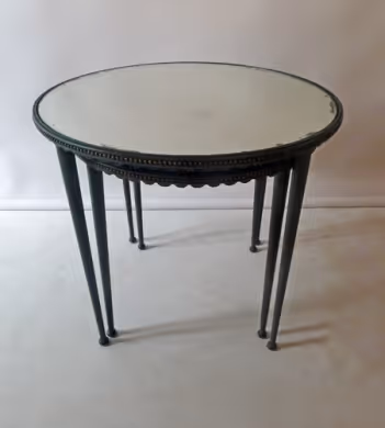 Two circular nesting tables with mirrored tops and bronze frames