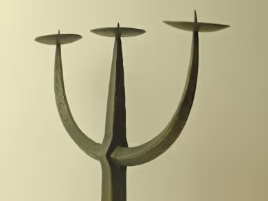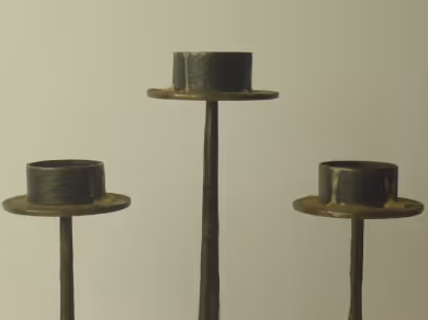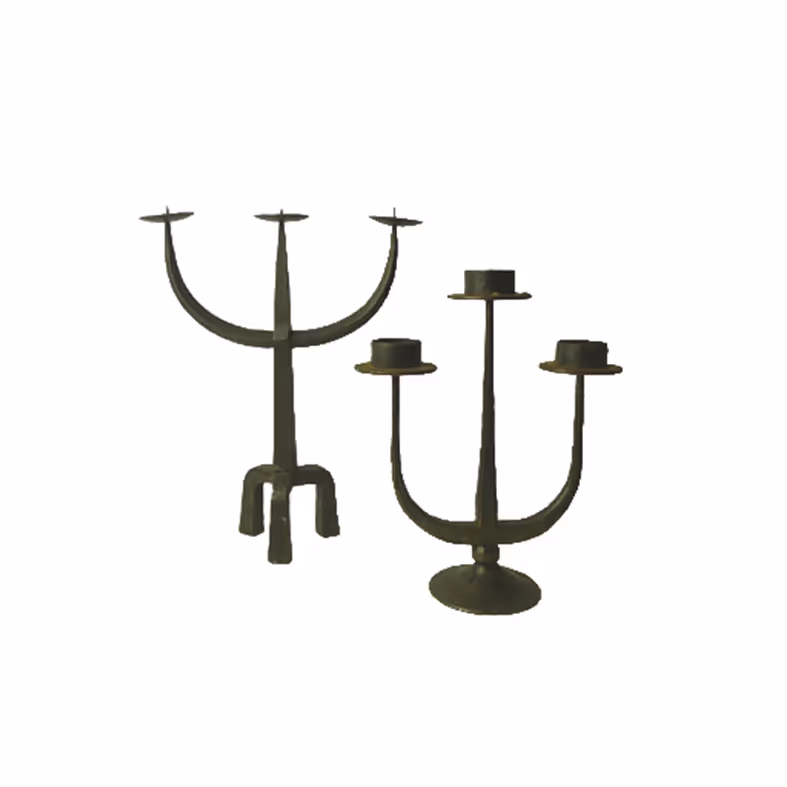 Two hammered iron candle holders.