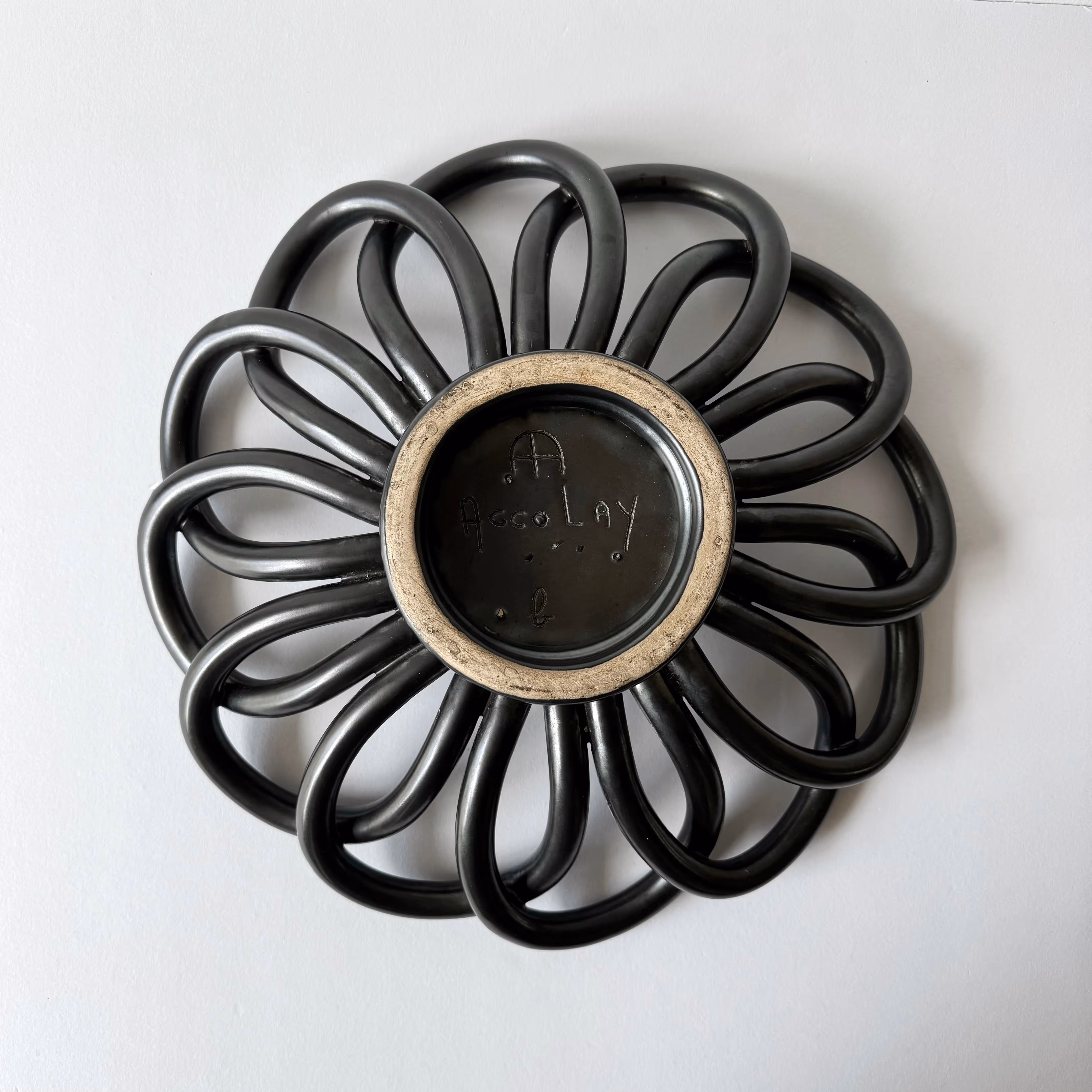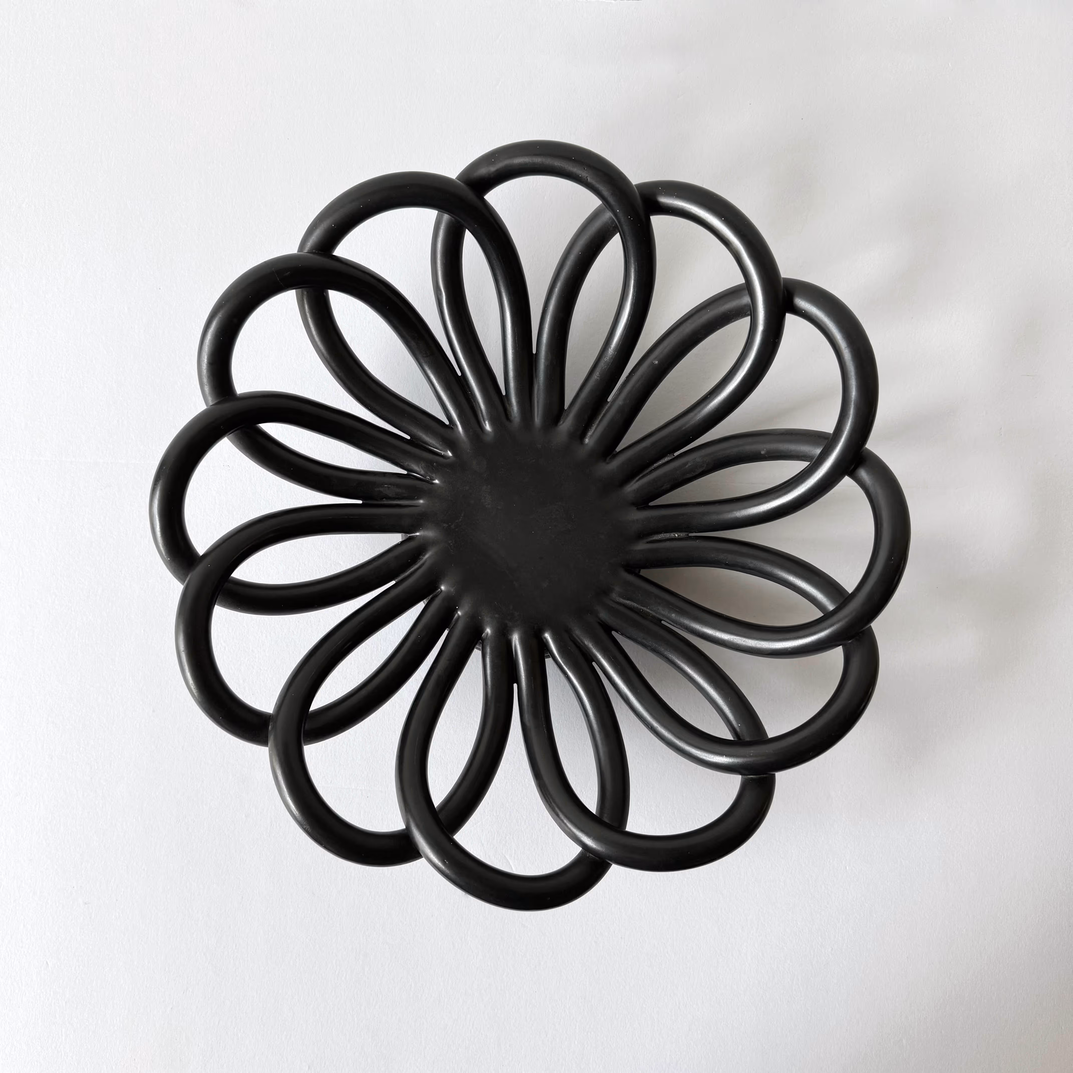 Matt black pottery daisy dish.