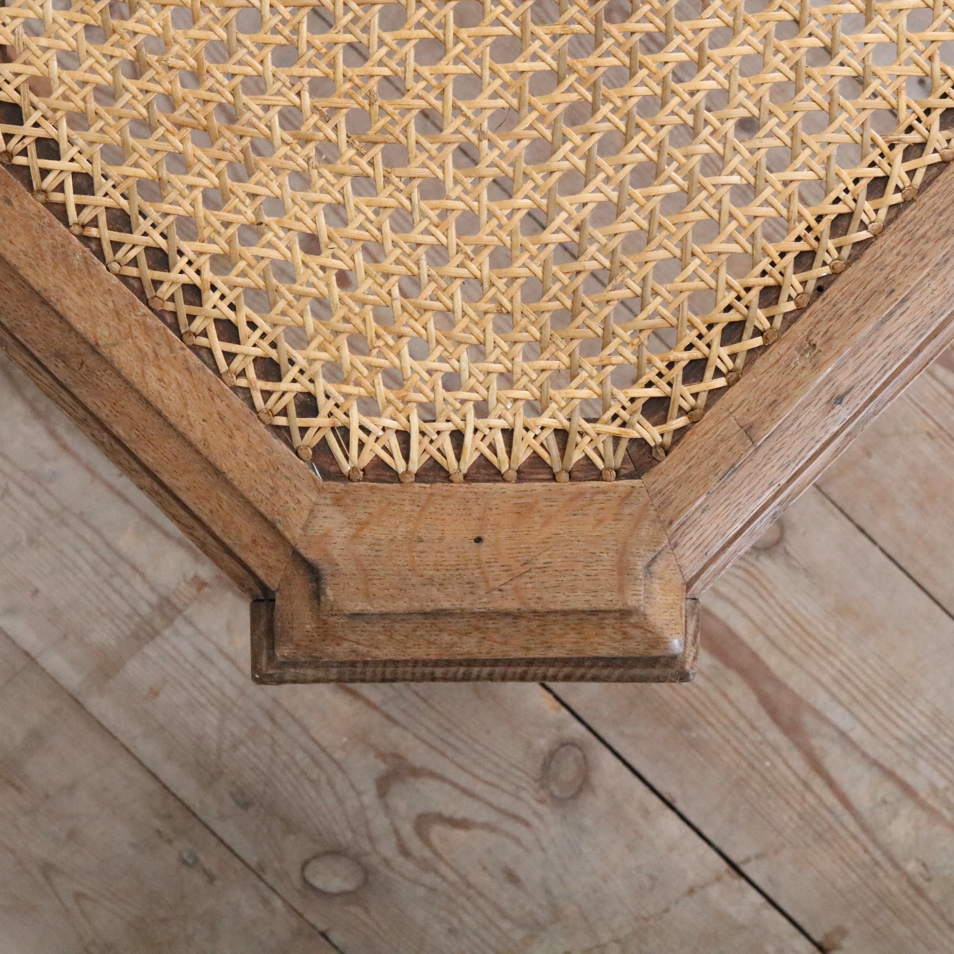 A carved oak bench with unusual flat, flutted legs. Seat newly recaned.