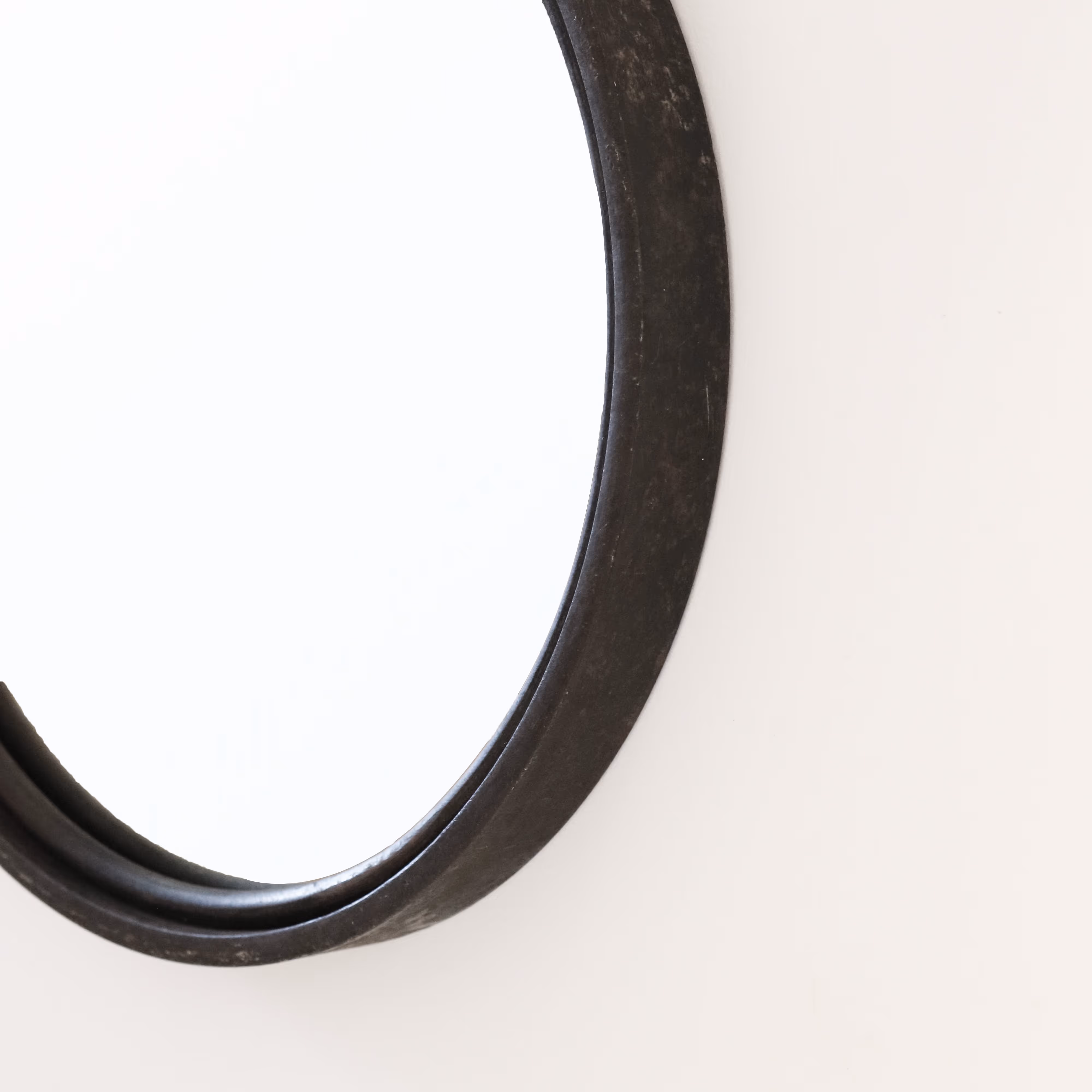 A heavy, black steel mirror with oversized link hook.