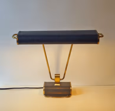 A black metal and brass desk lamp designed by Eileen Gray for Jumo Rewired and PAT-certified