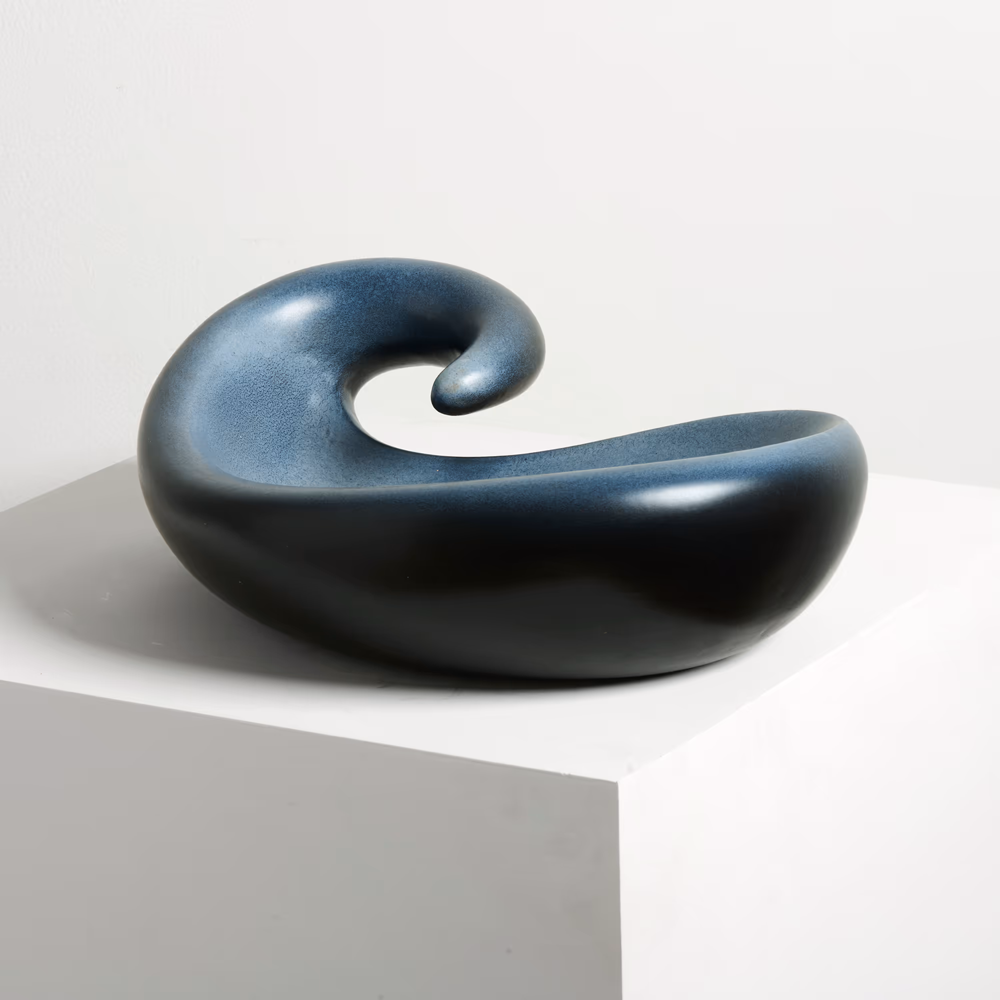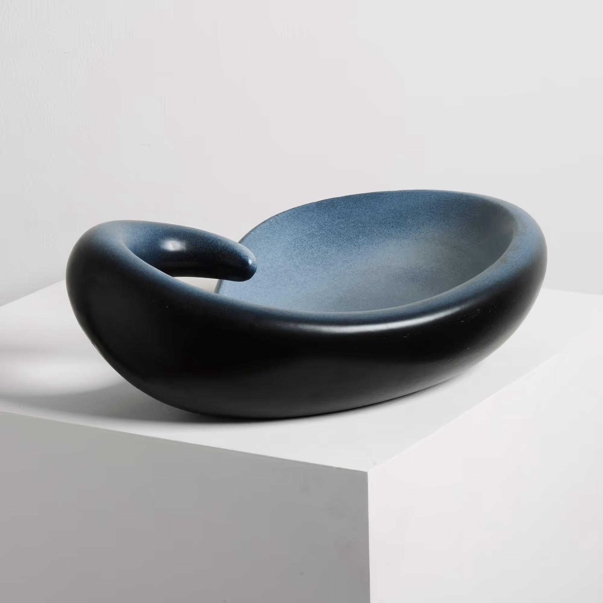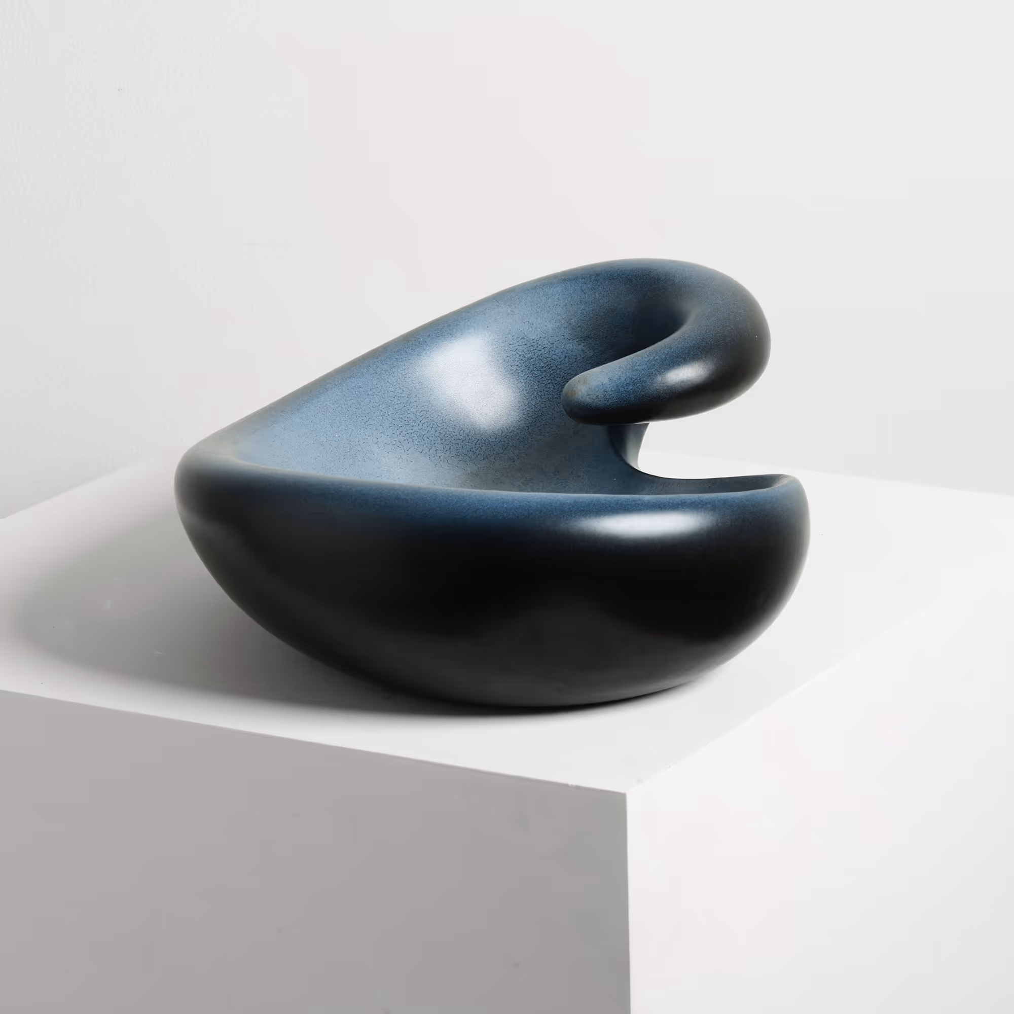 Unusual freeform dish with matt grey-blue glaze. Signed.