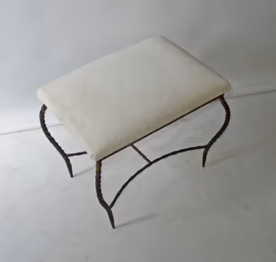 A gilt iron stool with upholstered seat