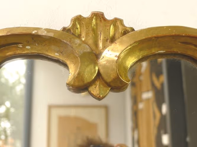 A hand-carved giltwood mirror in the style of Serge Roche.