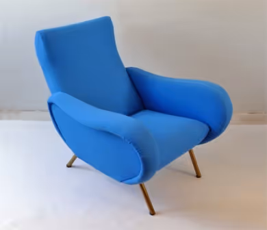 A lady chair by Marco Zanusso Newly reupholstered in cerulean blue wool