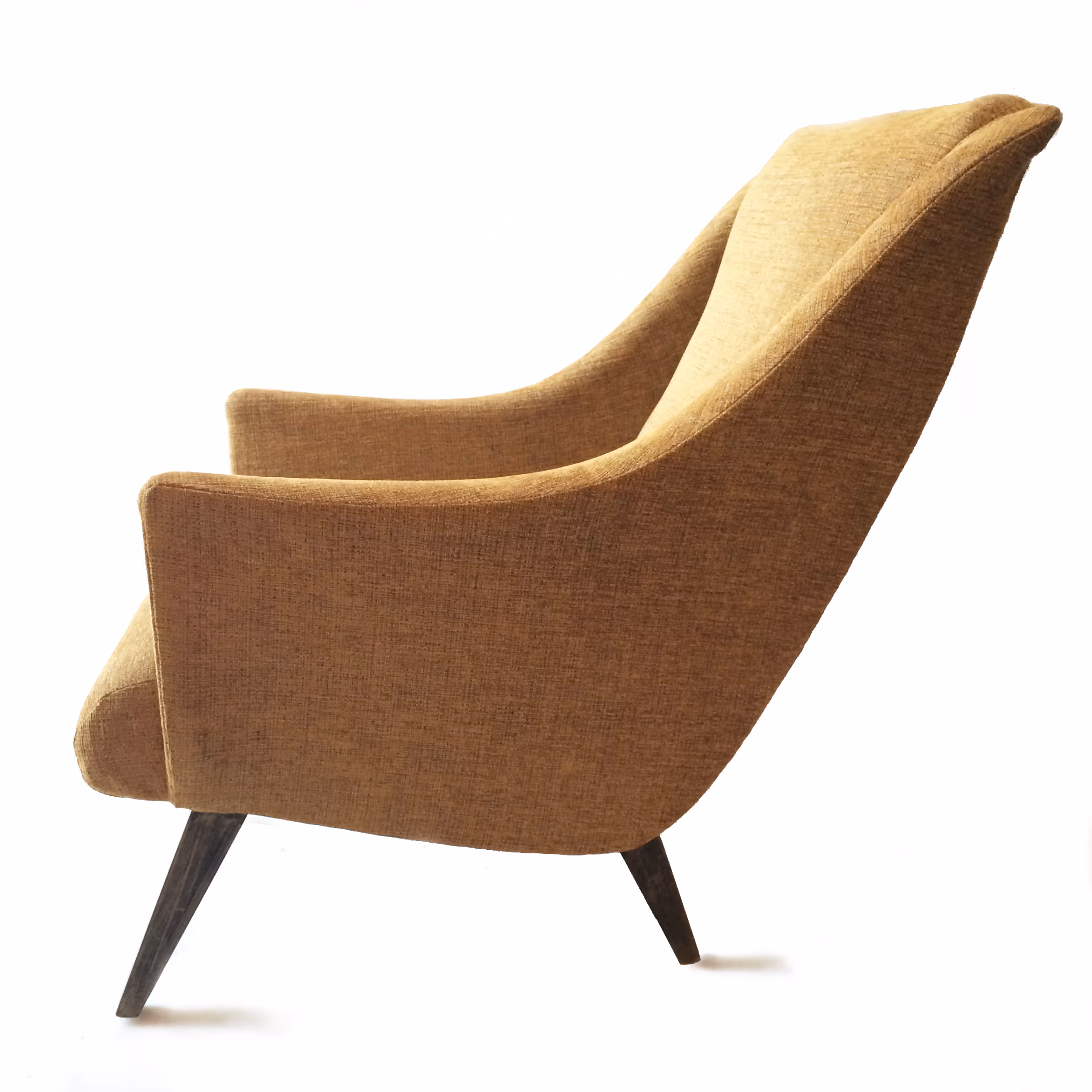 A pair of newly upholstered lounge armchairs, with ebonised oak feet.