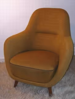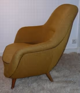 A pair of unusual 1950s armchairs in the style of Ramos with cherrywood legs Structure and original fabric in very good condition
