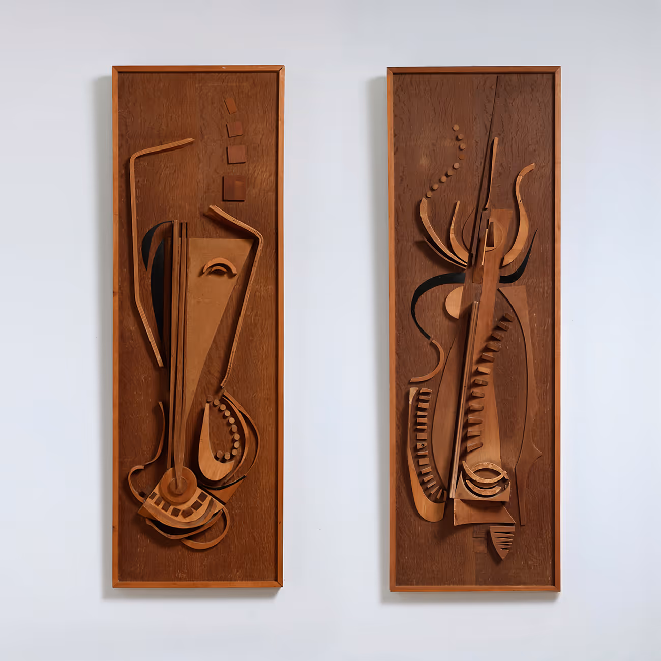 “Flowing 1” and “Flowing 2” Pair of abstract relief panels (ply wood)