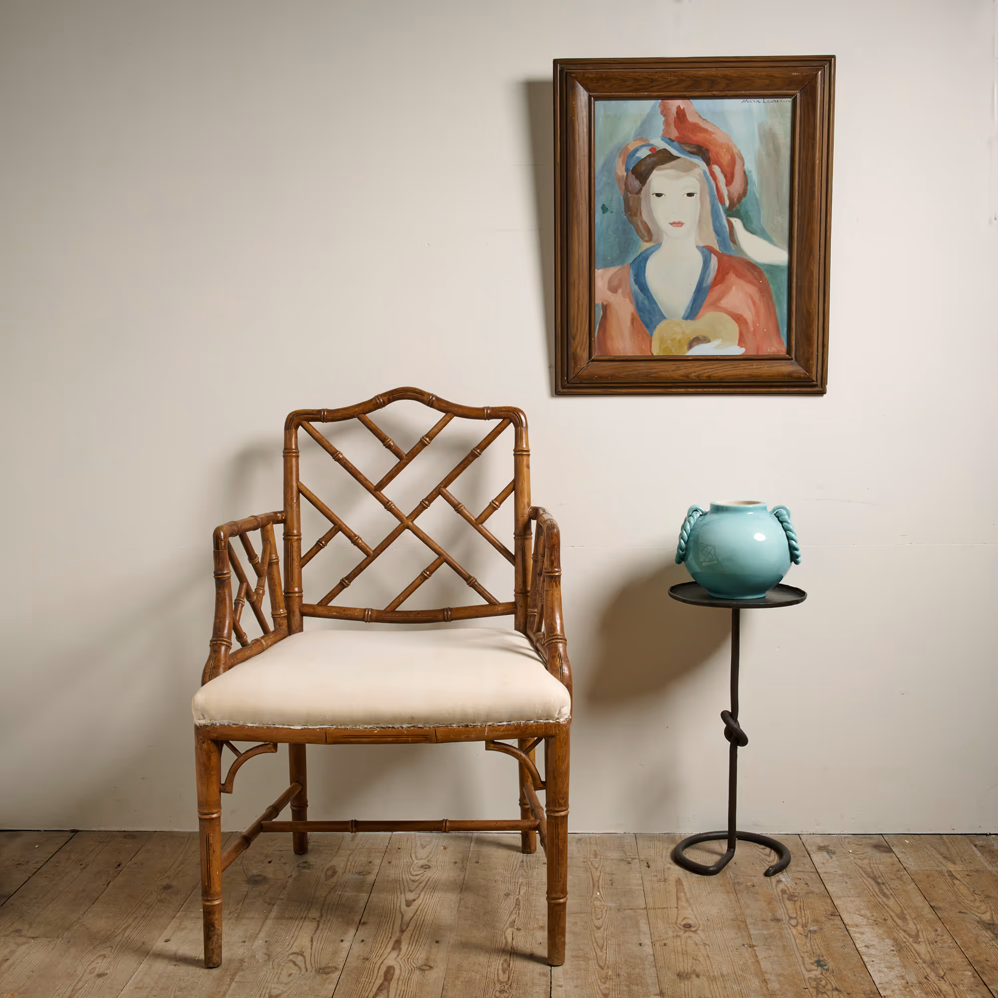Portrait of a lady with guitare and dove - oil on canvas after Marie Laurencin's (1883-1956) "Jeune fille a la colombe" watercolour from 1933. This good, amateur rendition would have been painted around 1980. Recently framed in period frame.