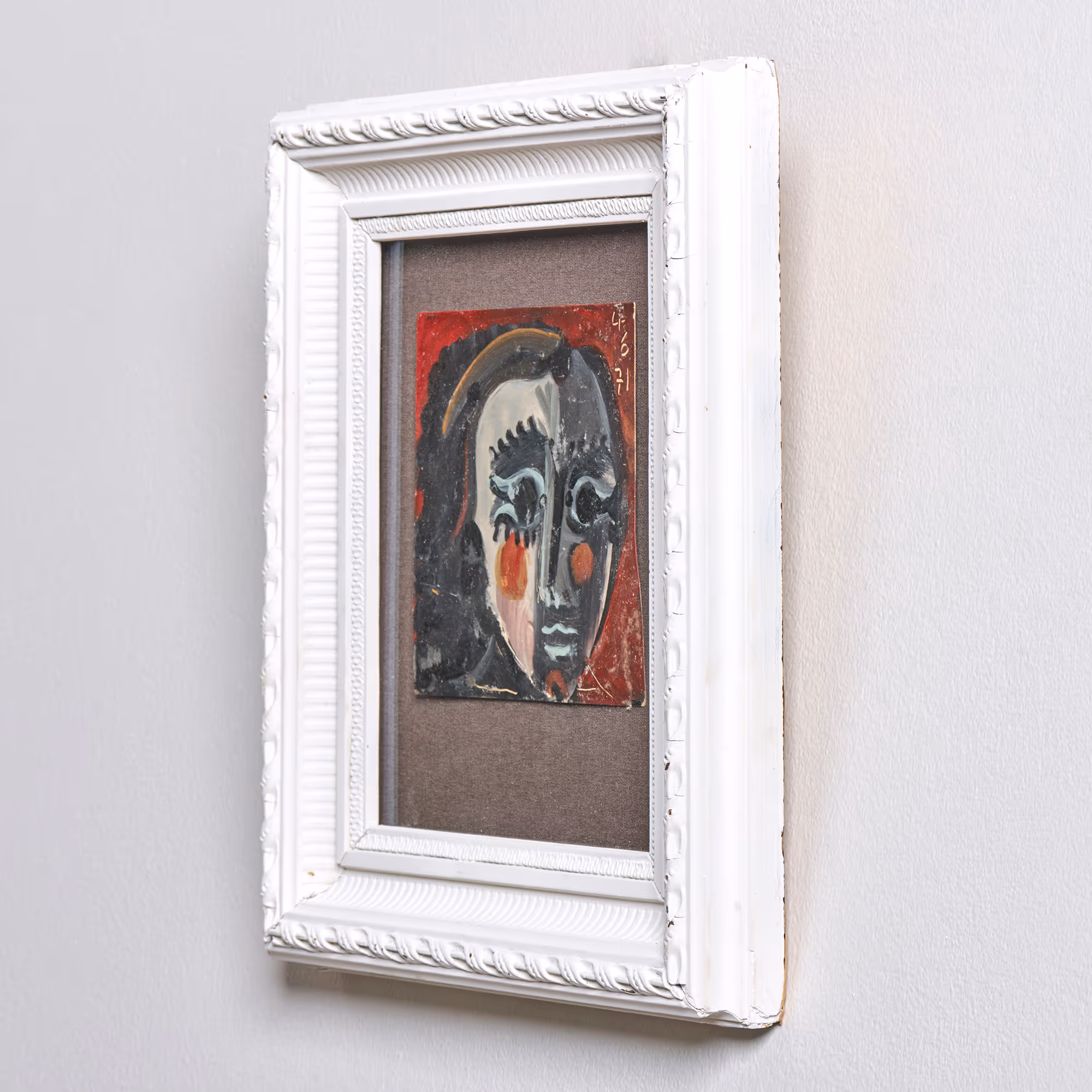 Portrait of a woman by Raymond Debiève (1931-2011), oil on card, dated 1971. Self-taught Debiève painted relentlessly on a variety of media, exploring mostly the human figure and portrait, his biggest influence being Pablo Picasso, as can be seen in this portrait.