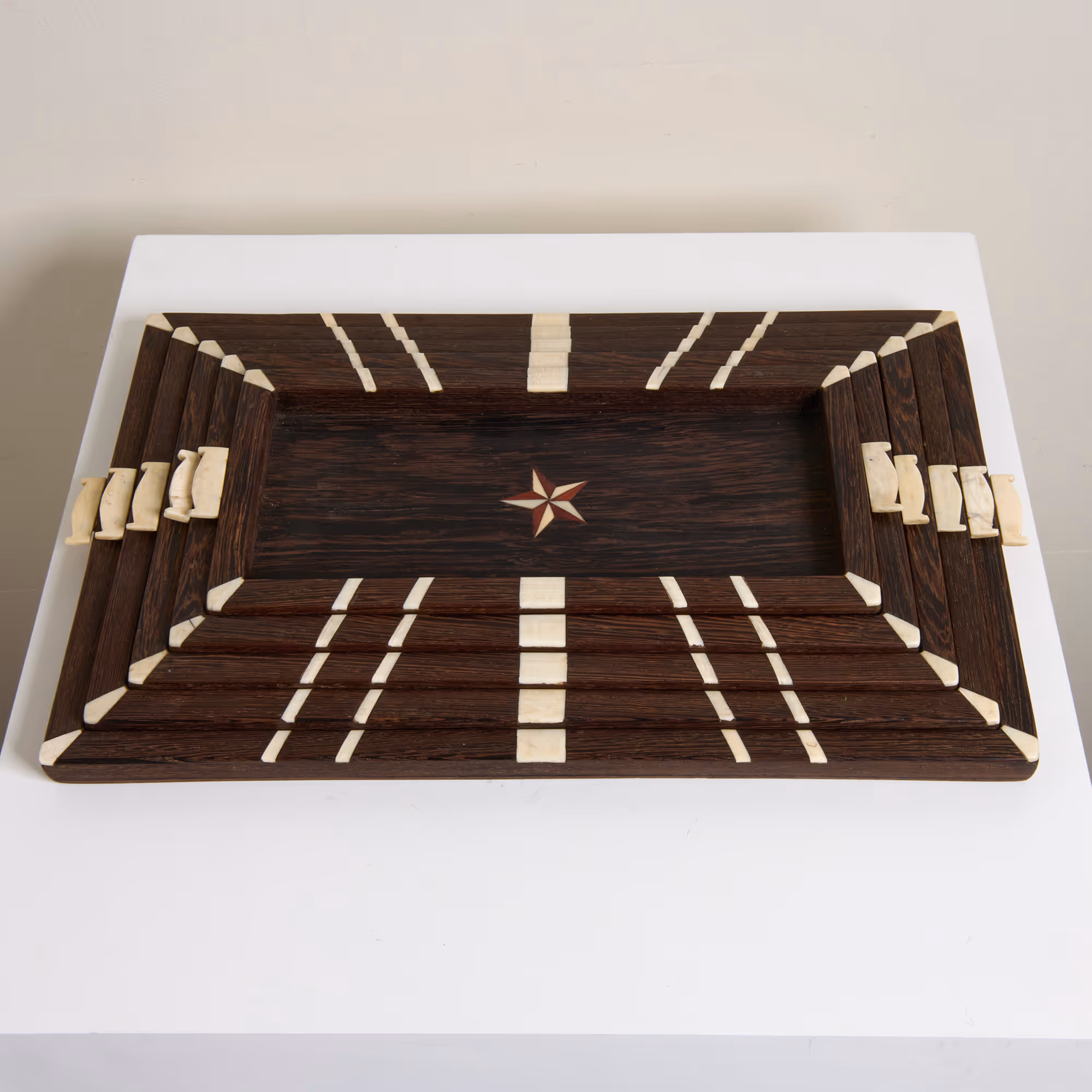 Set of 5x Art Deco trays. Wenge wood and bone inlay.