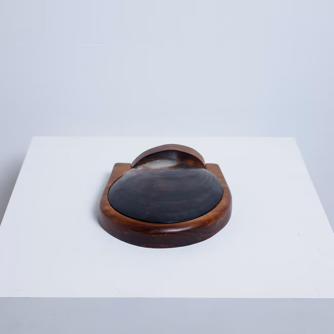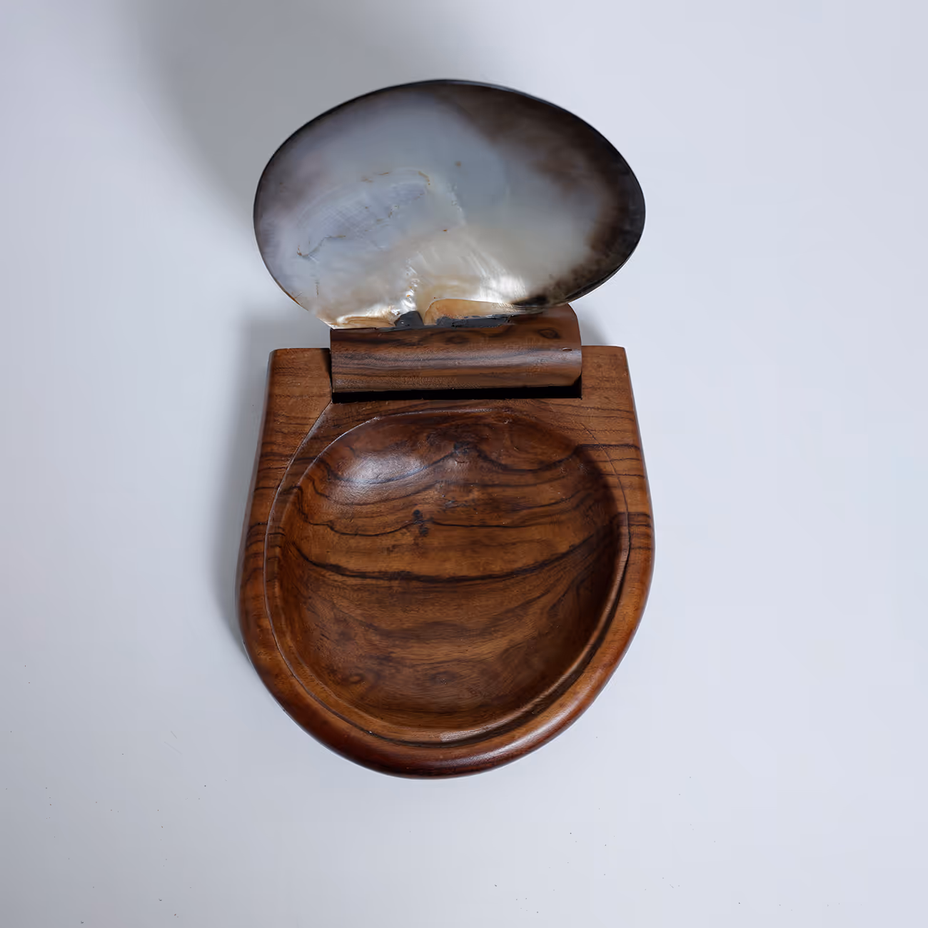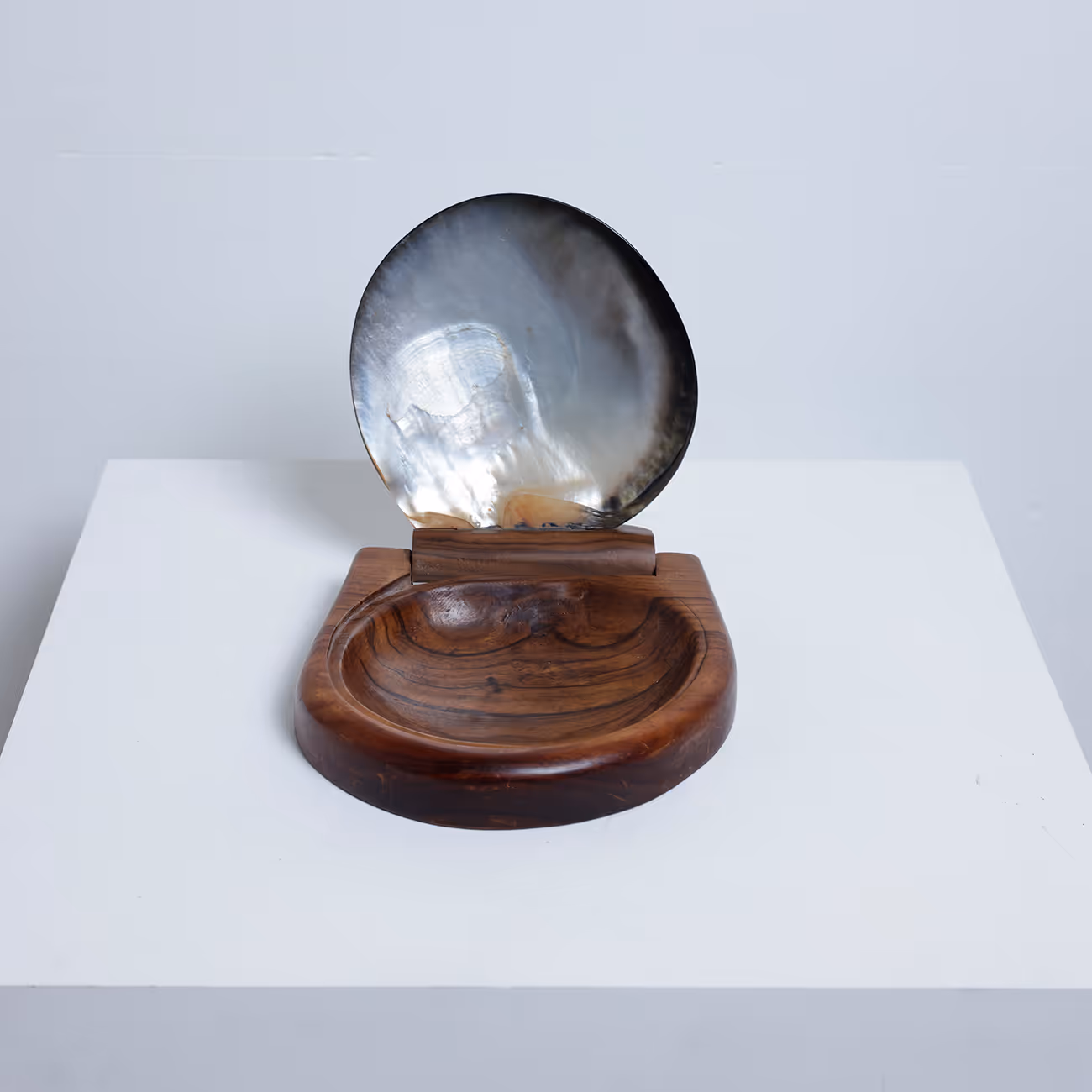 Carved wood box with large Tahitian oyster swivelling lid, in the manner of Alexandre Noll (1890-1970)