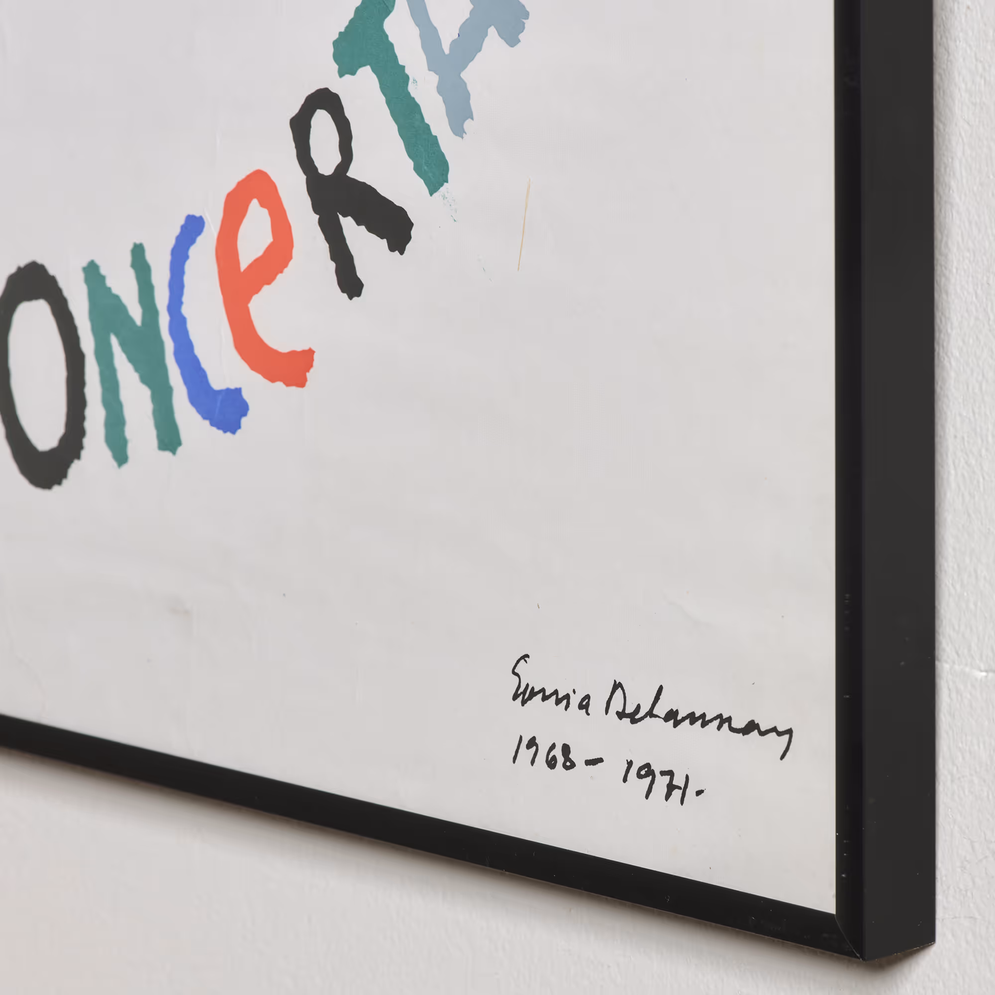 Poster by Sonia Delaunay (1885-1979) advertising Igor Stravinsky's Danses Concertantes staged bychoreographer Félix Blaska for the Ballet-Théâtre Contemporain in Amiens, France. Delaunay also created the stage designs for this performance. Signed in plate.