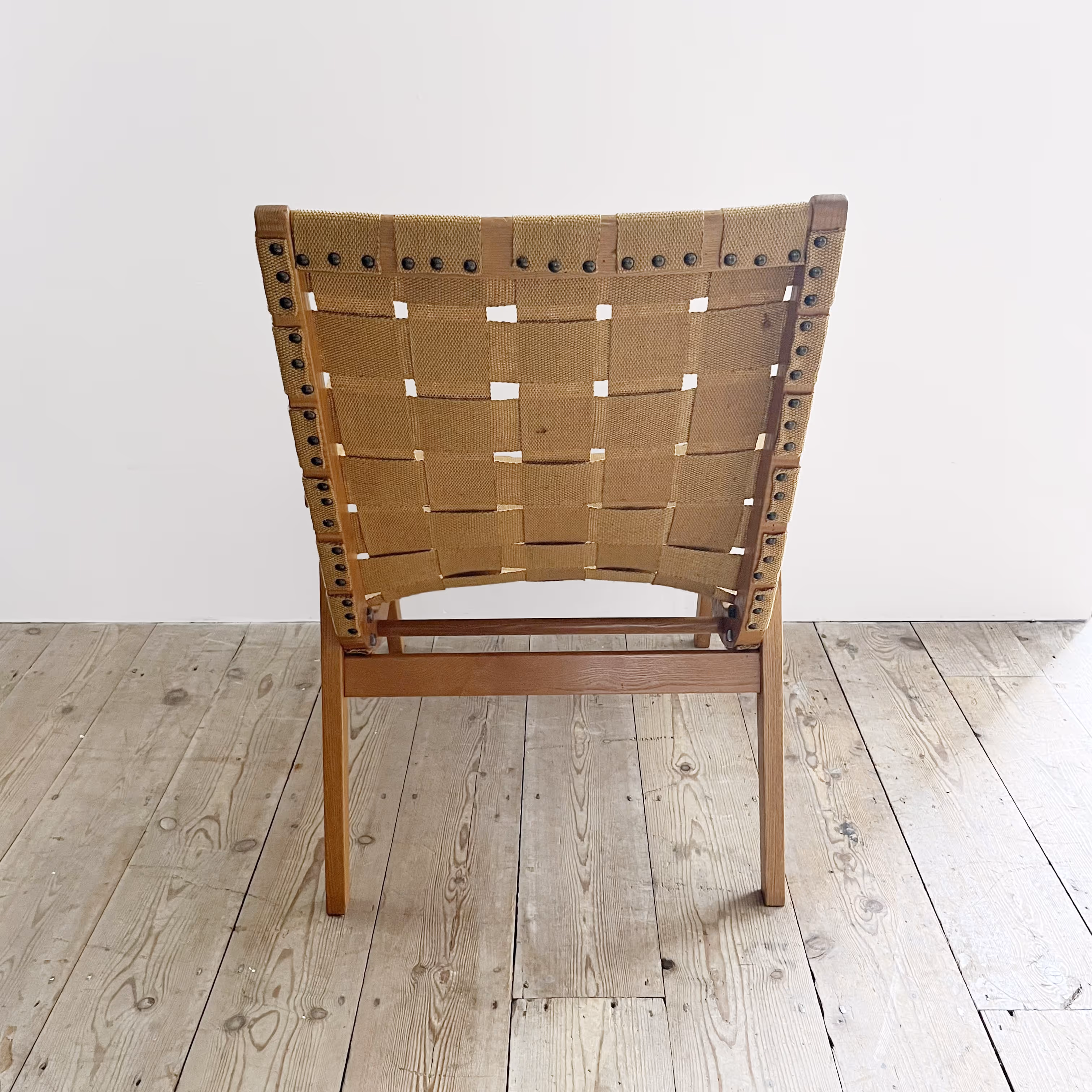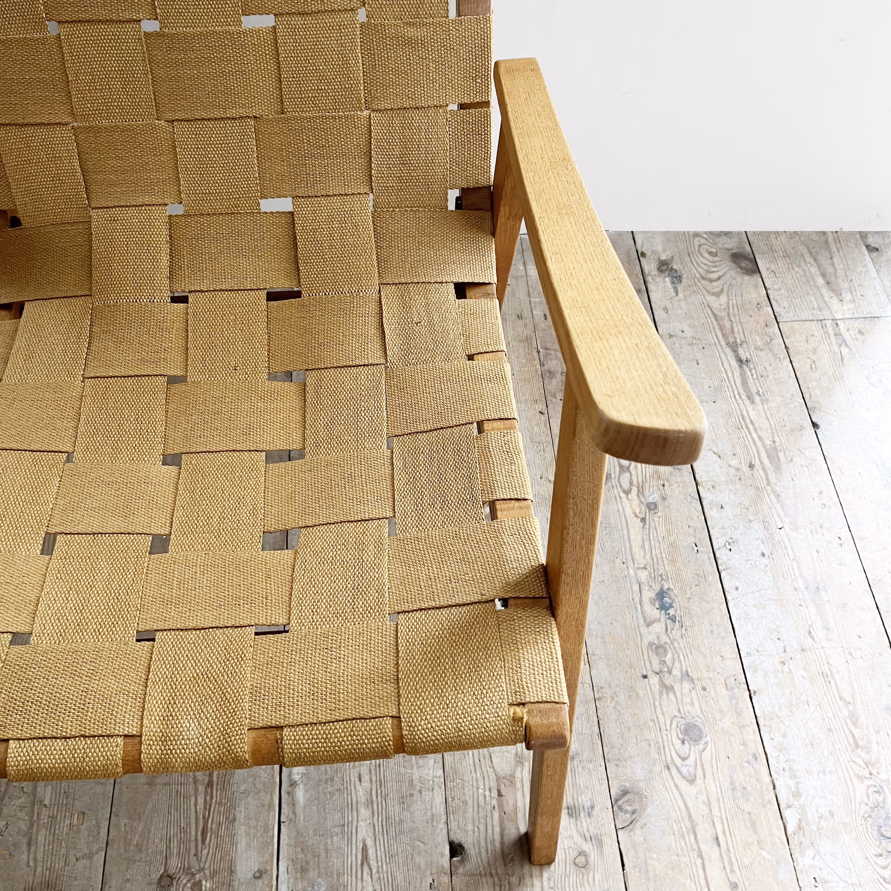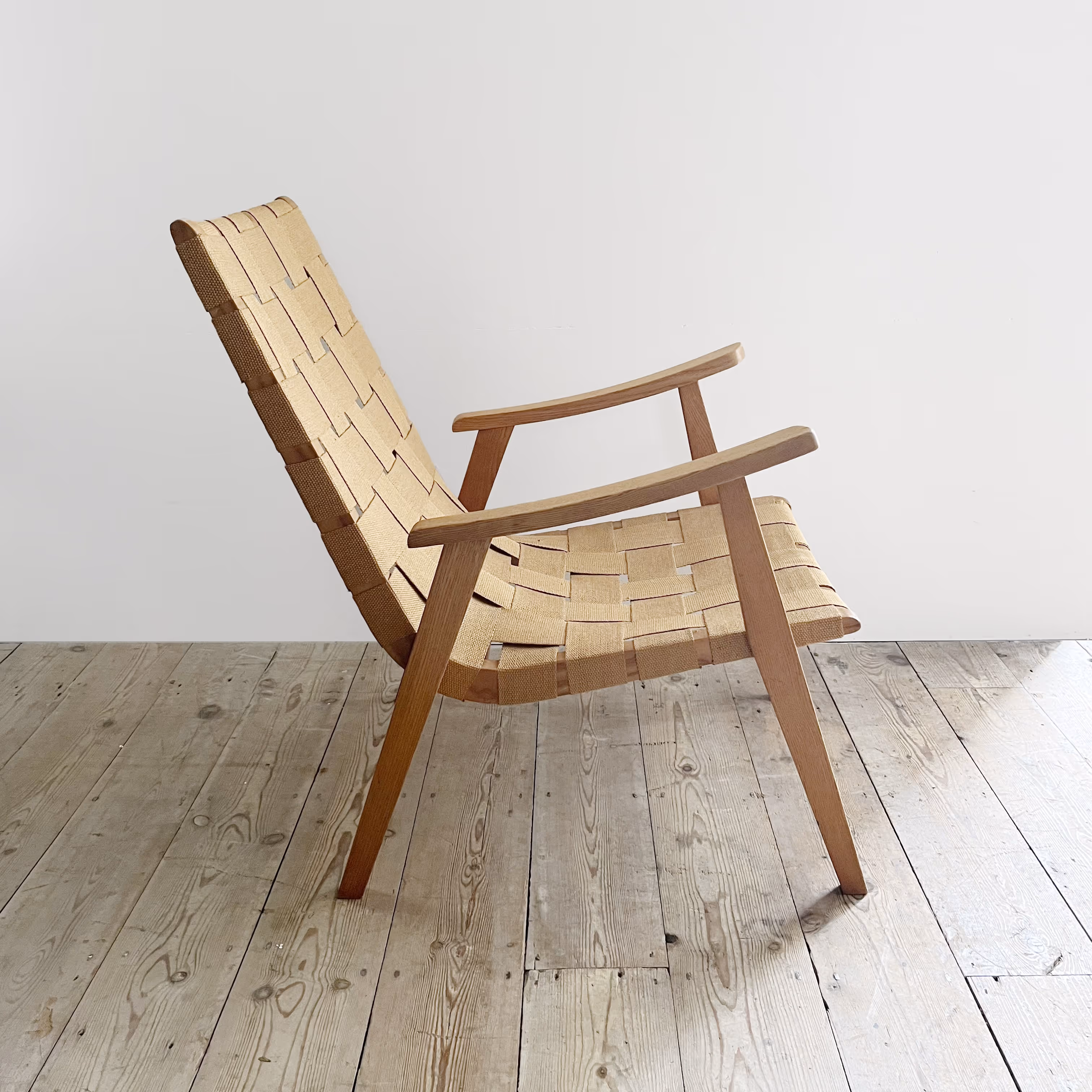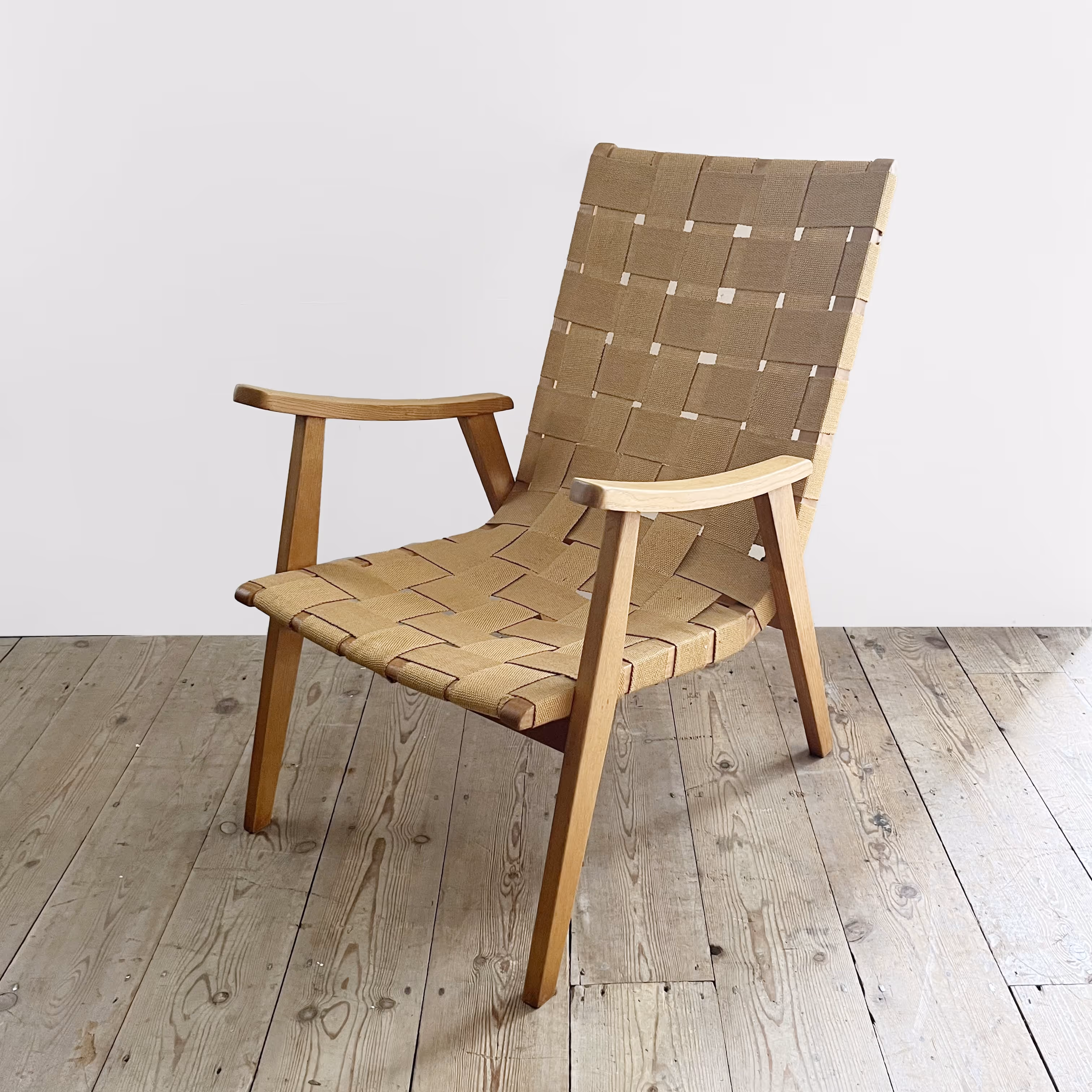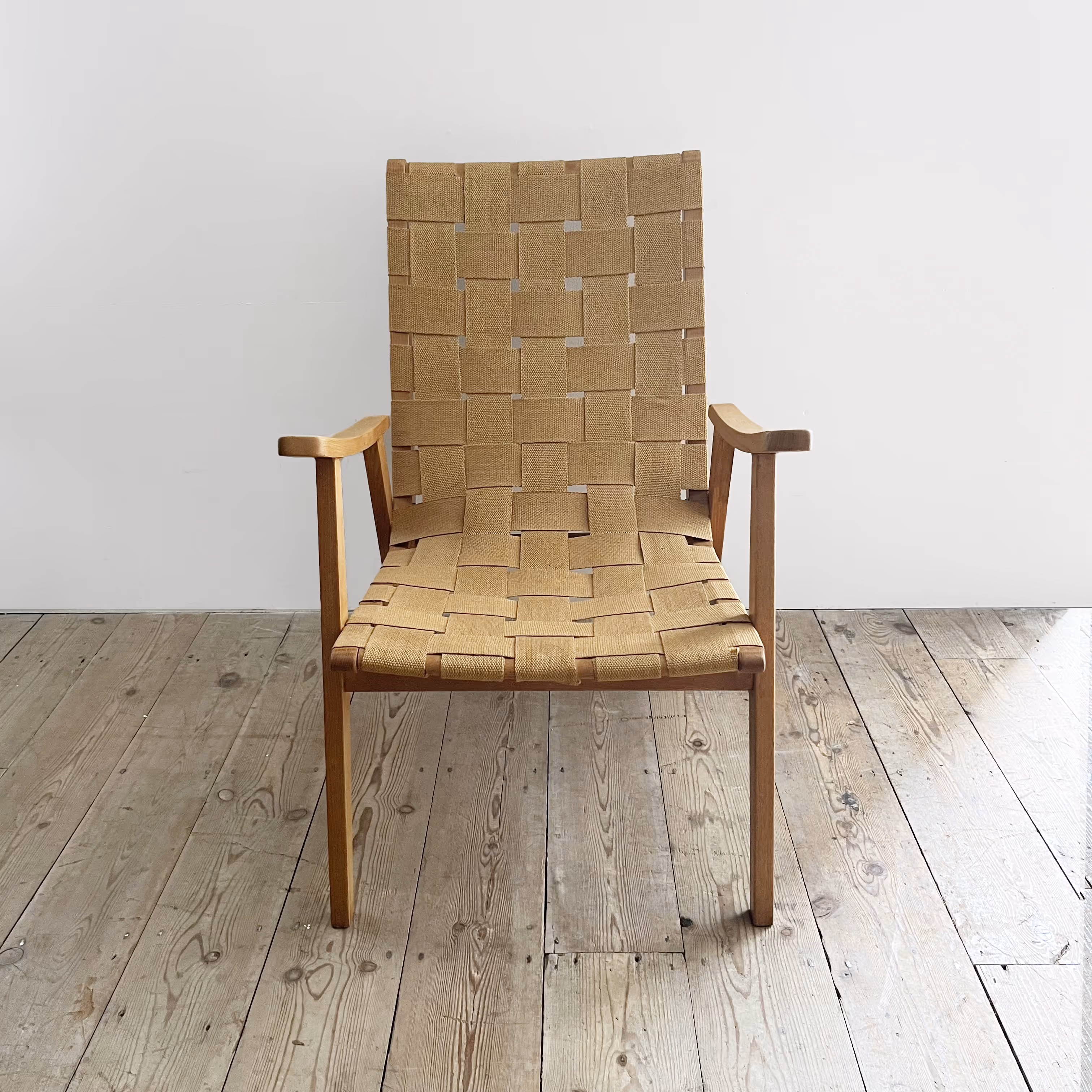 Lounge chair: beech frame and webbing upholstery. A good-looking chair for occasional use.