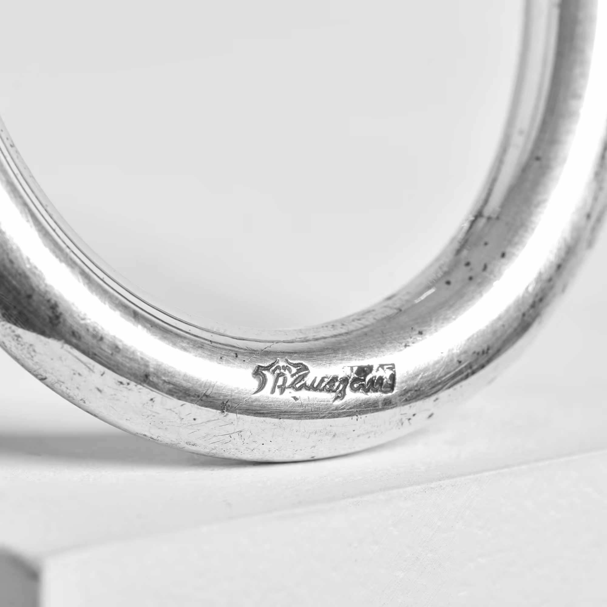 A silver-plated wine bottle-holder, the design referencing horse bites.